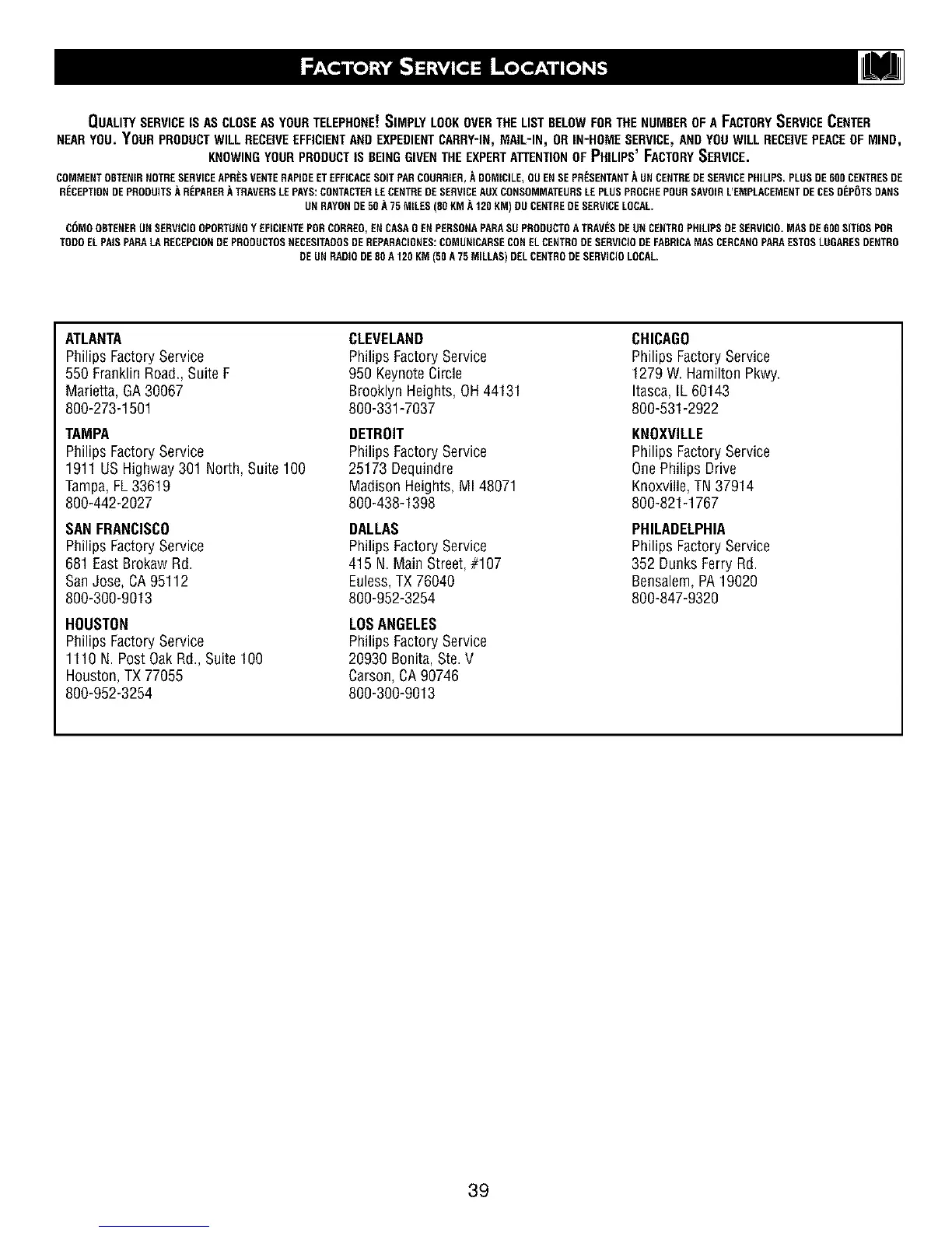 QUALITYSERVICEIS ASCLOSEASYOURTELEPHONE!SIMPLYLOOKOVERTHELISTBELOWFORTHENUMDEROFA FACTORYSERVICECENTER