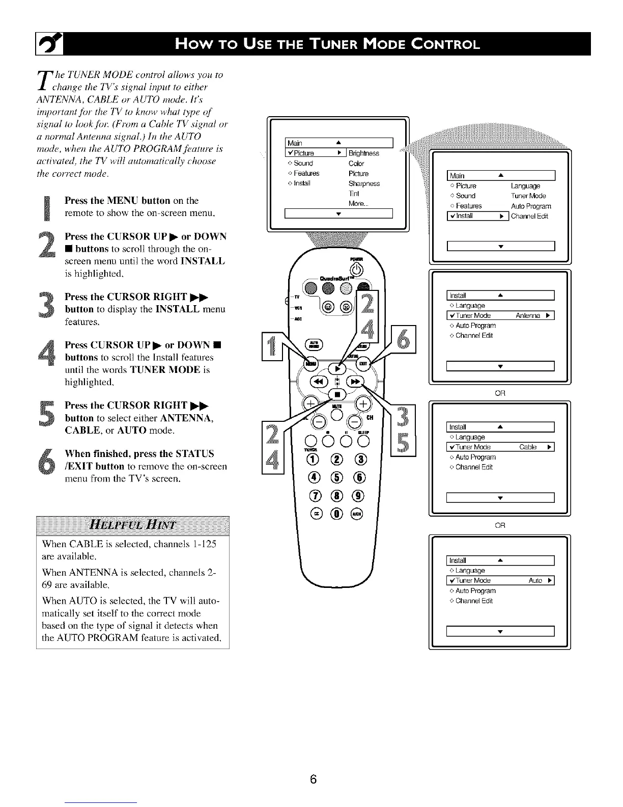 CABLE, or AUTO mode.