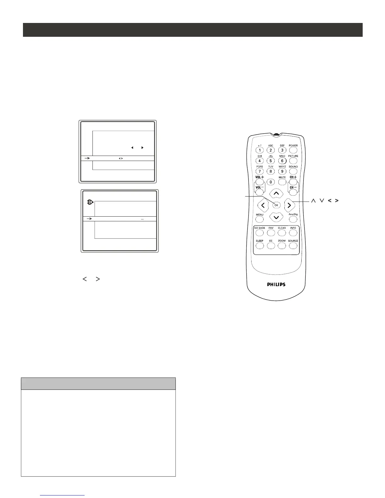 arrow key and press ok