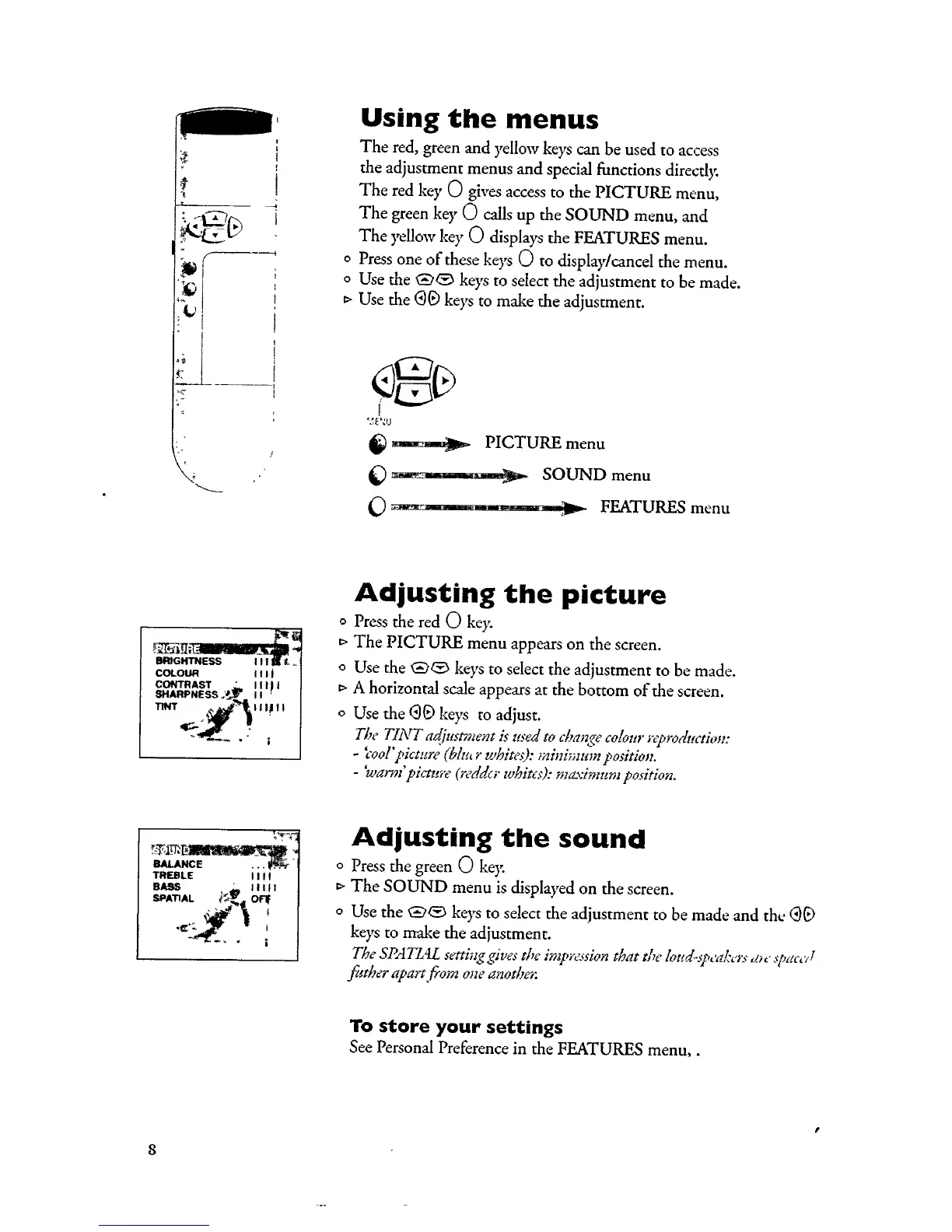 Philips 28PT4523 - Menu Adjustments; Adjusting picture settings; Adjusting sound settings