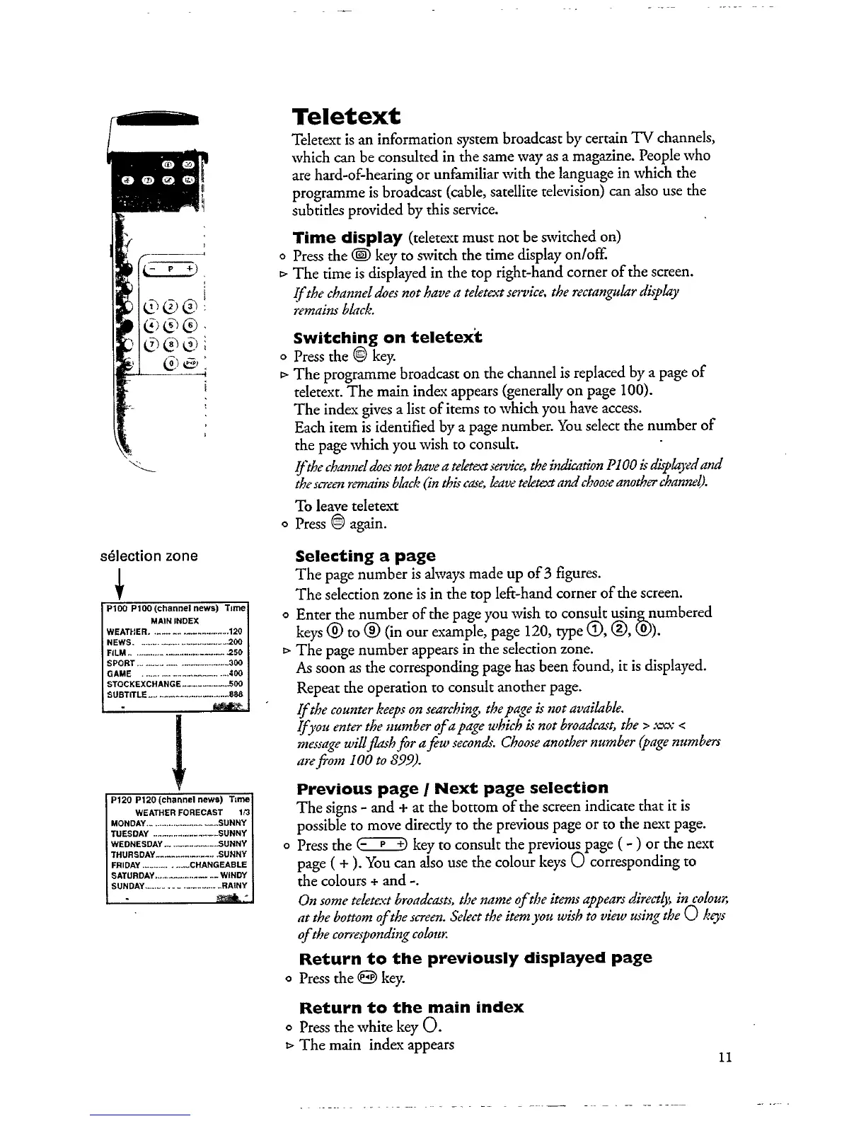 Philips 28PT4523 - Teletext Information Service; Switching on teletext; Selecting a teletext page; Next and previous page selection