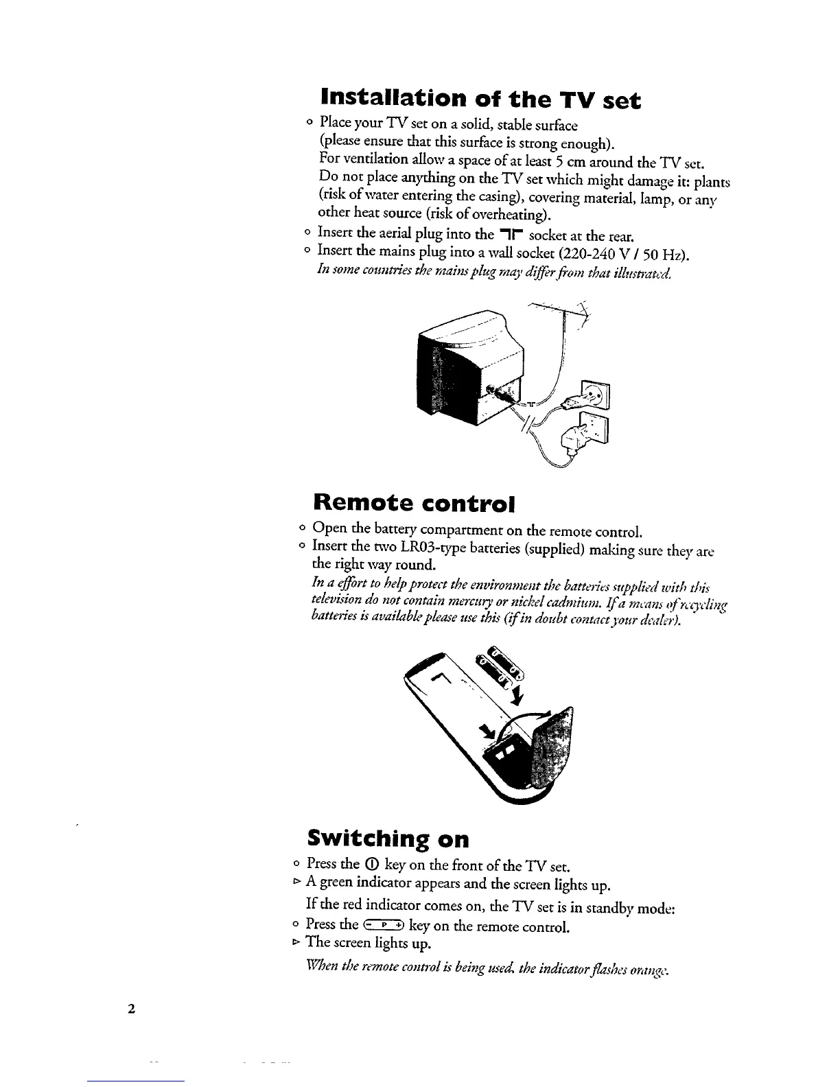 Philips 28PT4523 - TV Set Installation Basics; Remote control setup; Switching the TV on