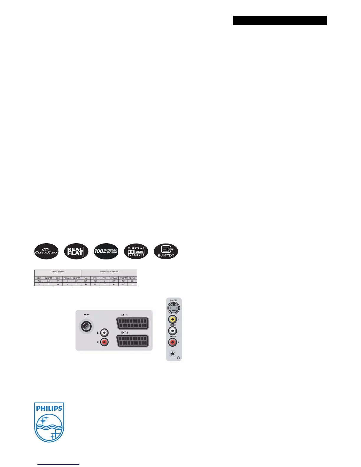 • Ext 2 Scart: CVBS in/out, S-video in, Audio in/out