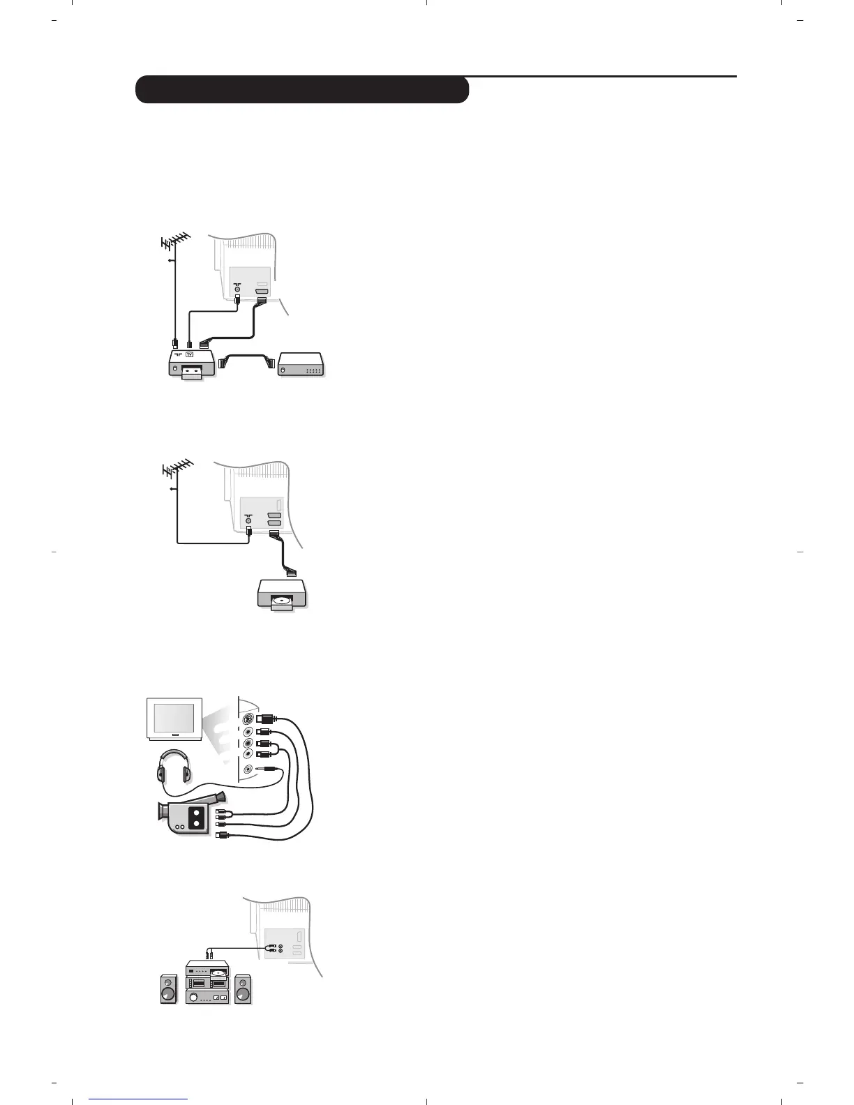 Dependendo da versão, o televisor está equipado com 2 ou 3 fichas SCART EXT1, EXT2 e EXT4,