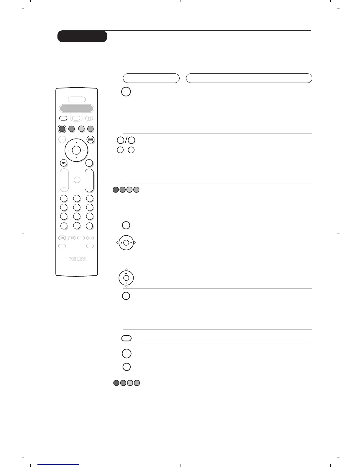 De 4 farvede taster giver adgang til de tilsvarende afsnit