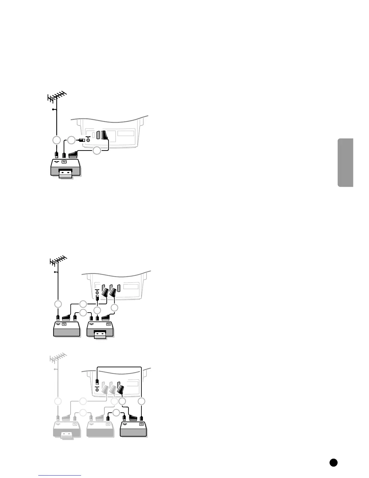 4 Connect the aerial cables 1, 2 and 3 as shown opposite. Better picture