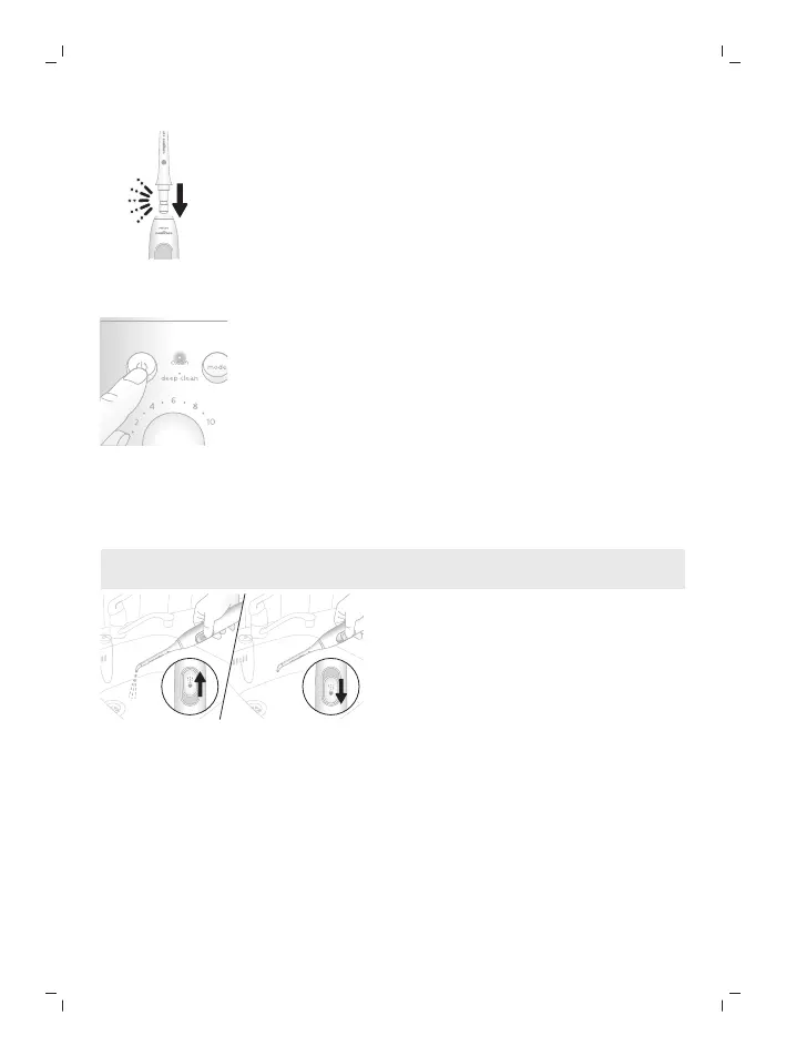 Saque el mango de la base y apunte la punta de la boquilla hacia el lavabo.