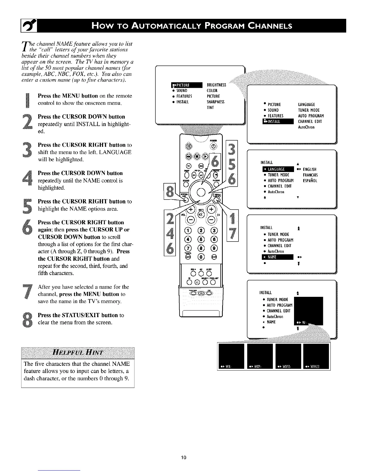 appear on the screen. The TV has in memory a