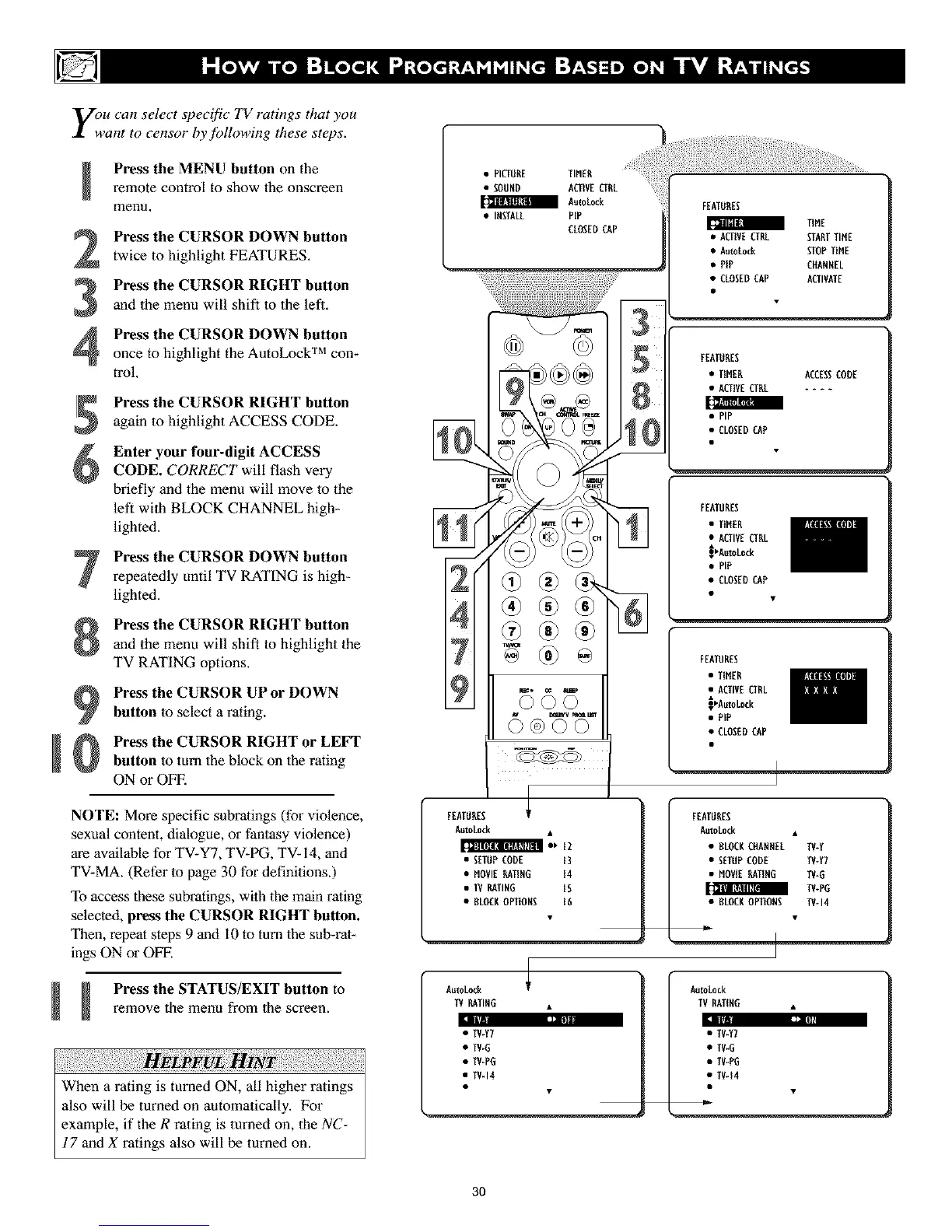 TV RATING options.