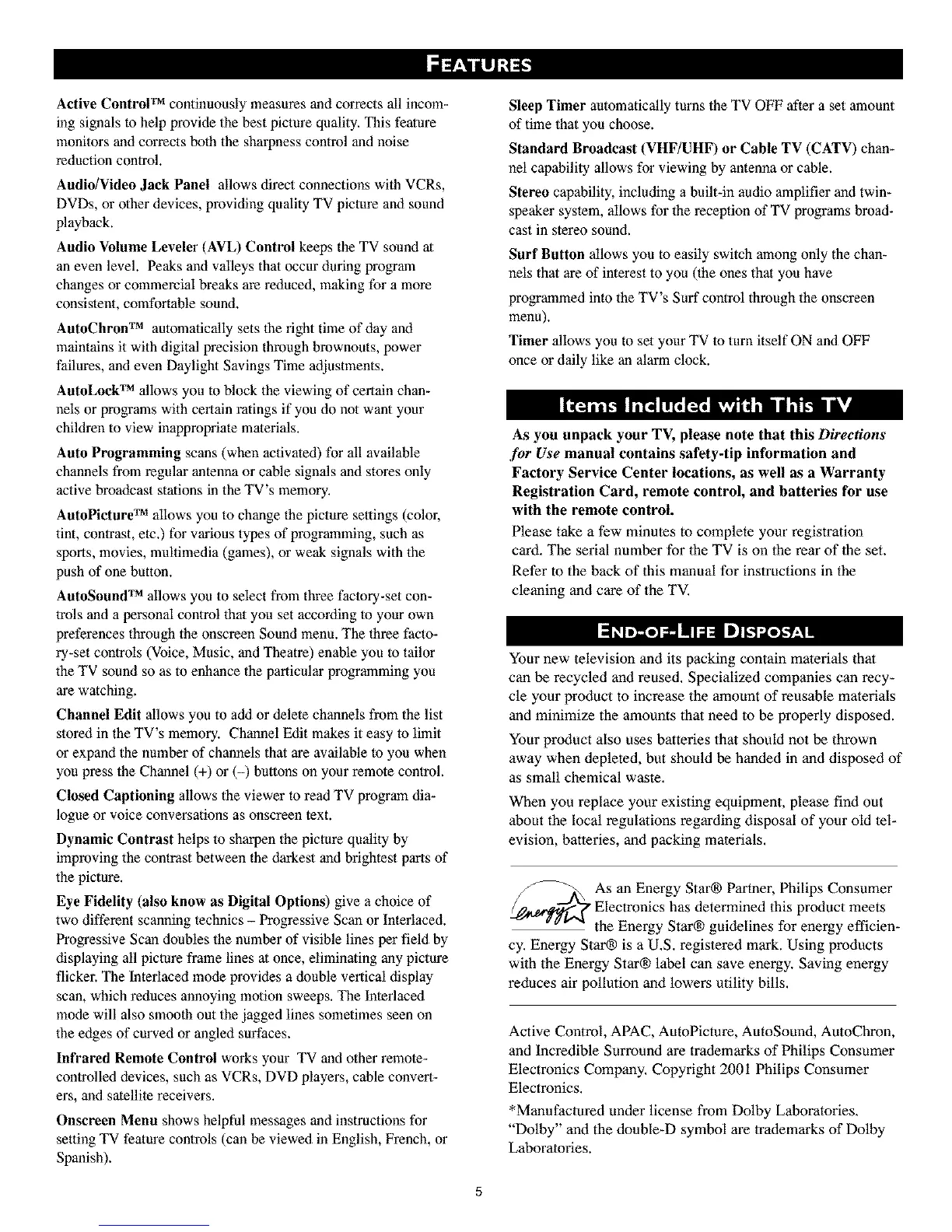 Active Control, APAC, AutoPicture, AutoSound, AutoChron,