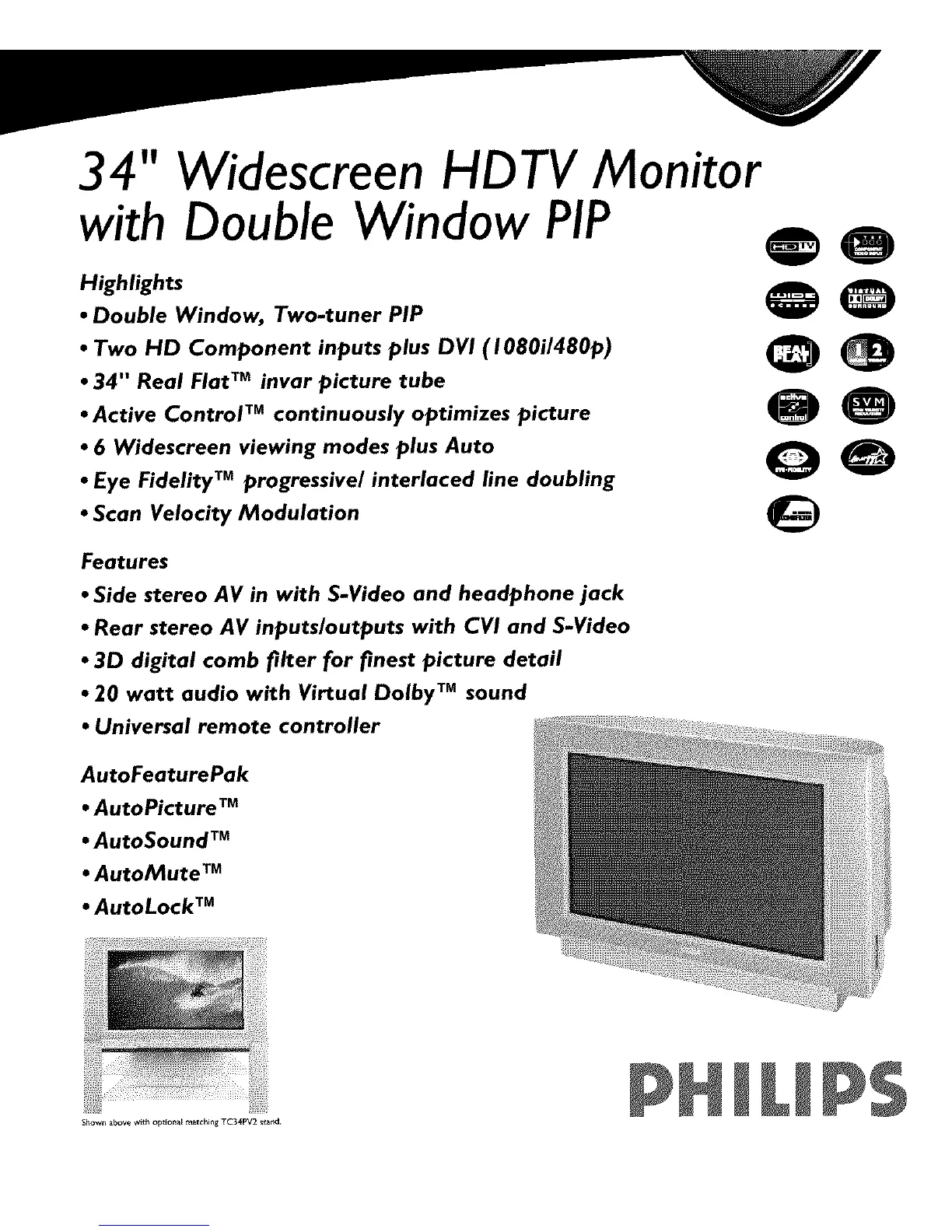 • 34" Real Flat TMinvar picture tube
