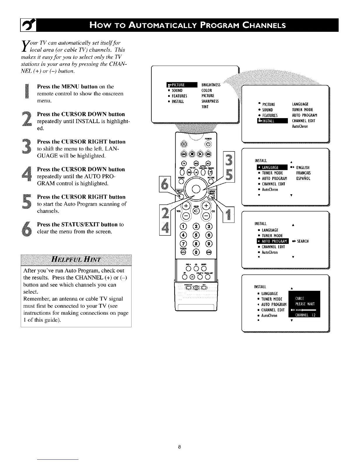 to start the Auto Program scanning of