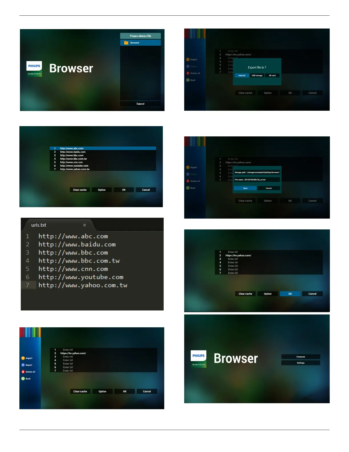 • Import the browser le and the URL will be listed on the
