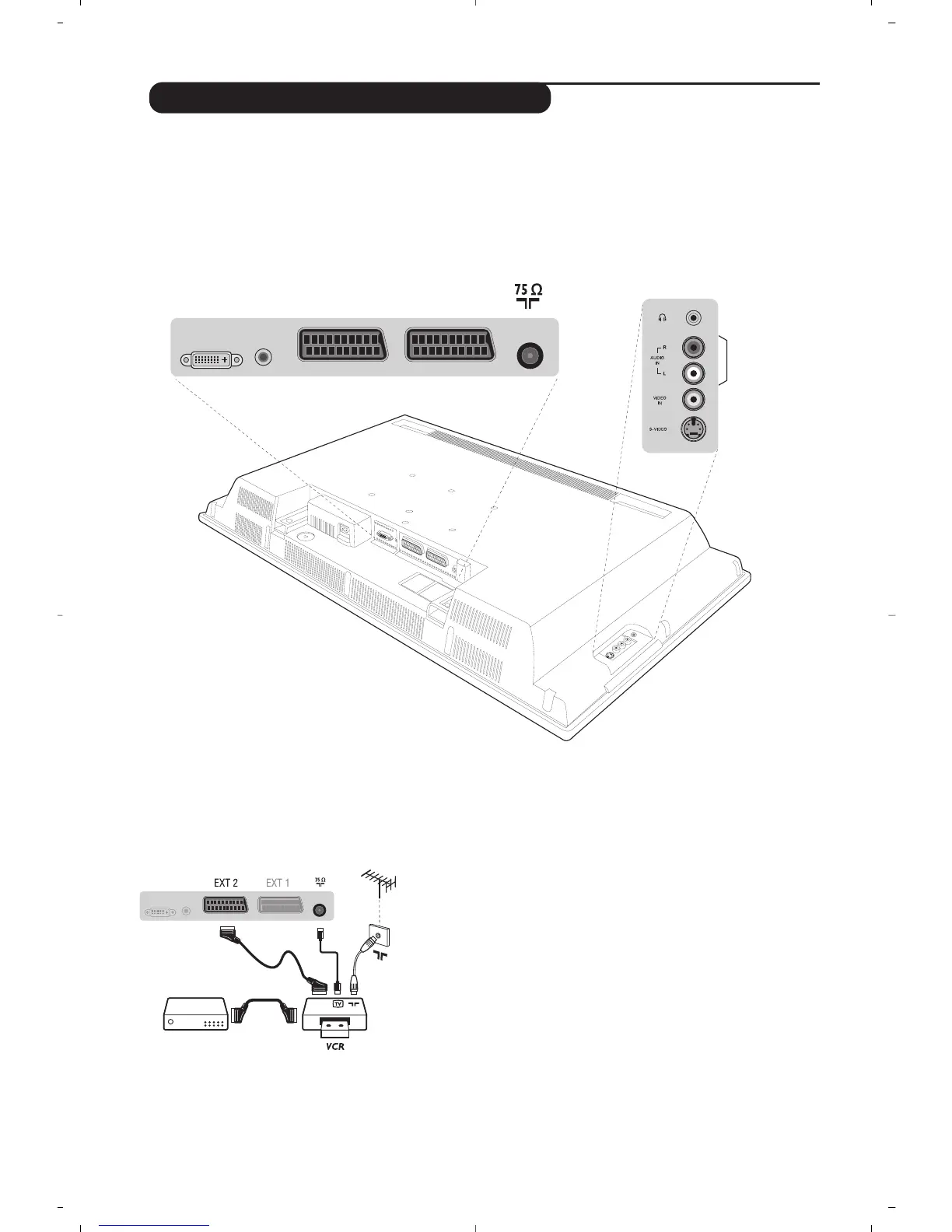 TV-apparten är utrustad med 2 uttag, EXT1 och EXT2, vilka placerats på apparatens baksida.