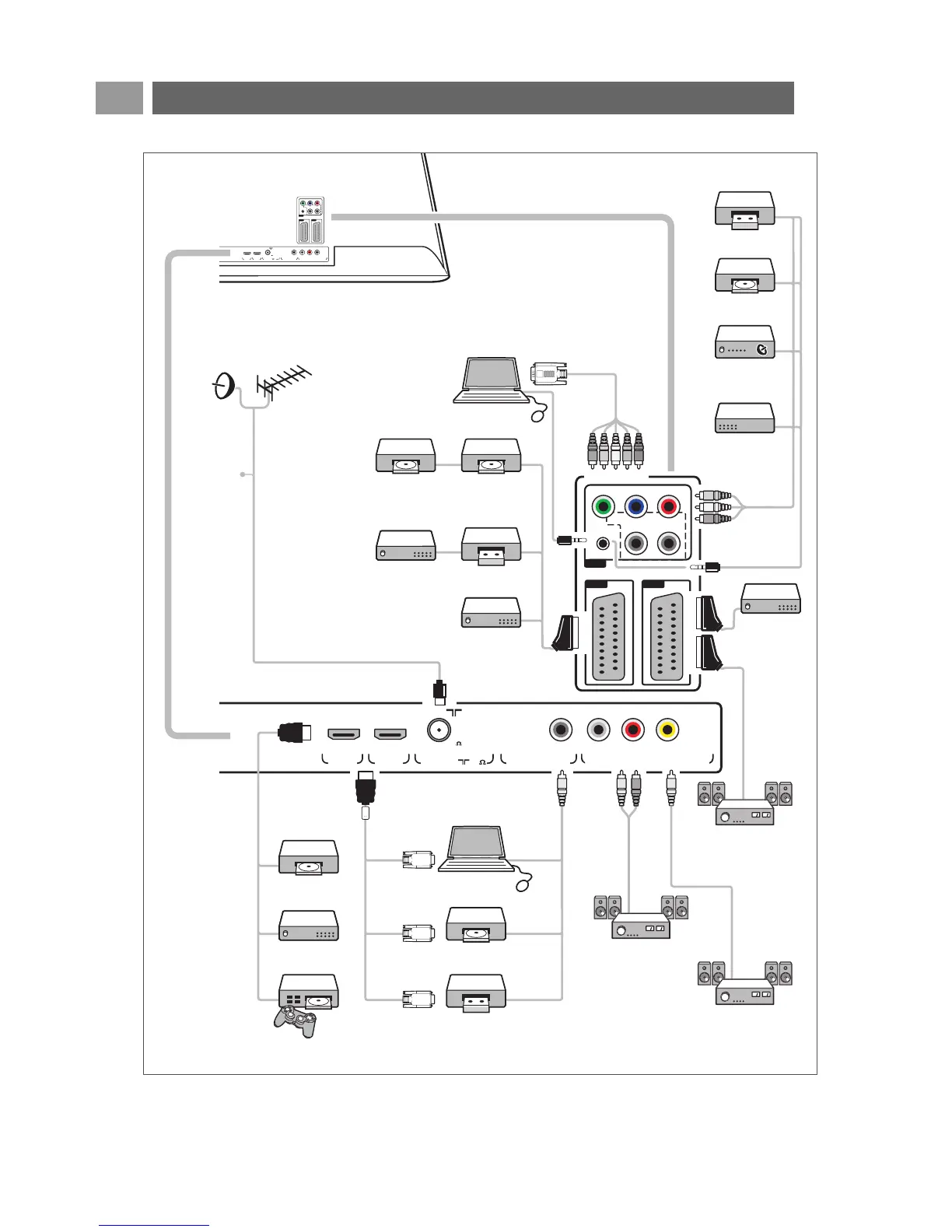 To make video and audio connections - Rear panel overview