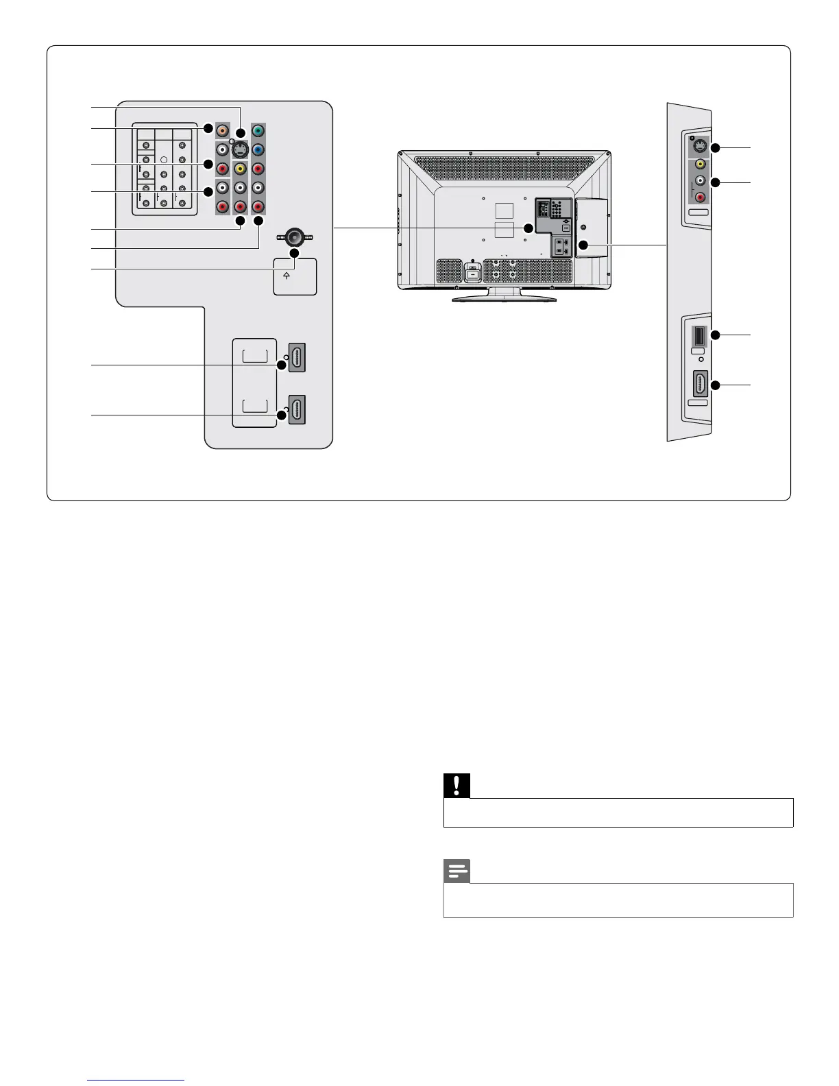 • Different types of connectors may be used to connect a device to your TV, depending