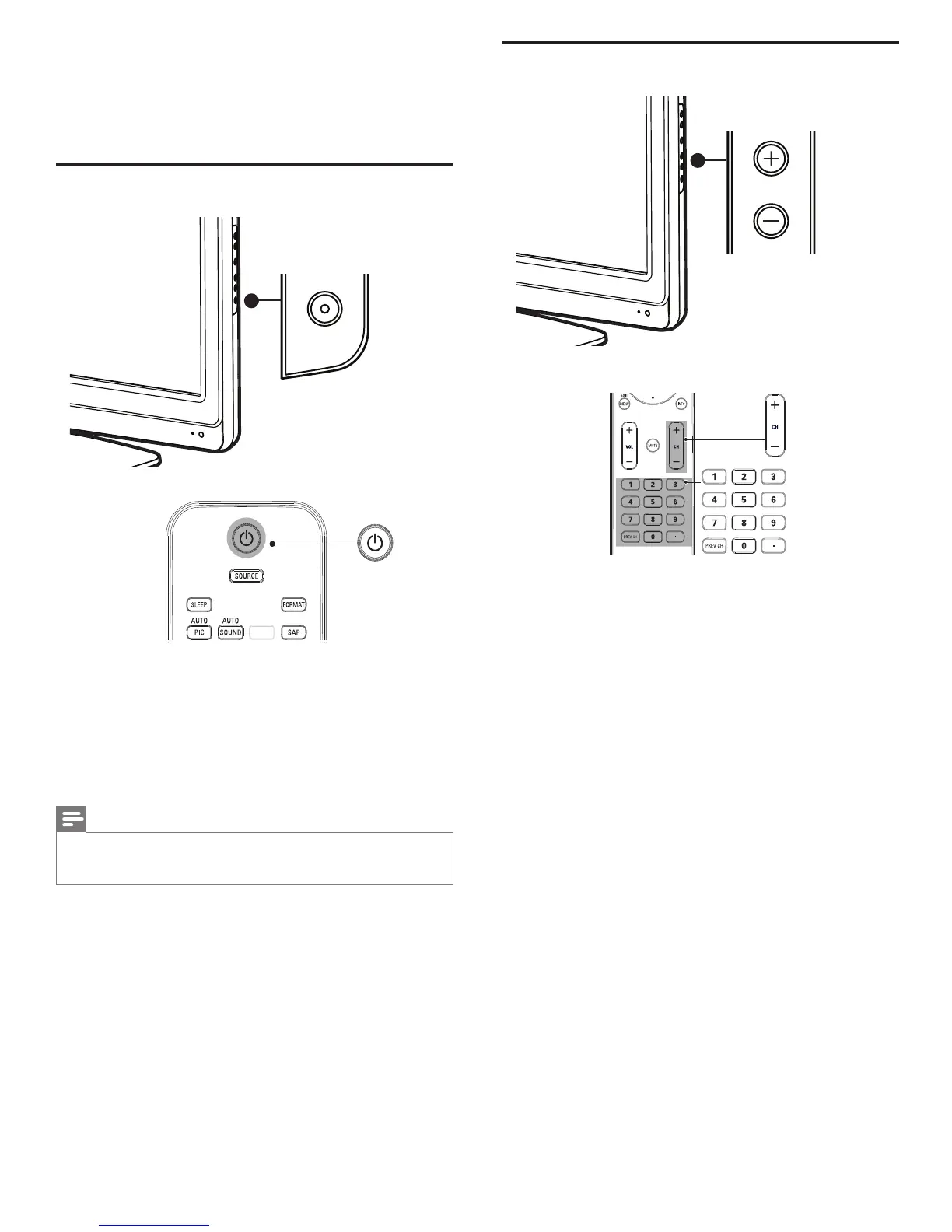 • Press . POWER at the side of the TV.