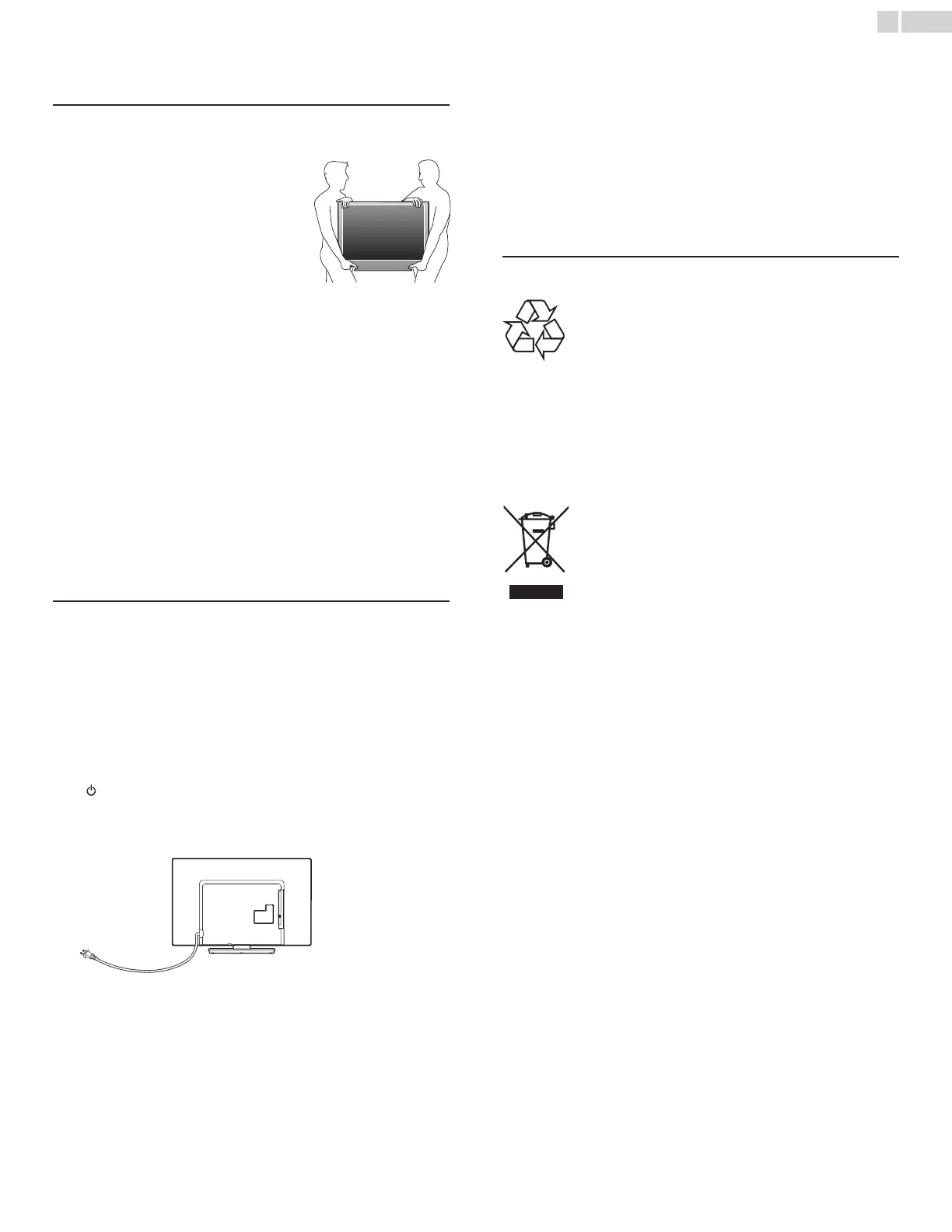 • Large screen TVs are heavy. 2 people are required to carry and