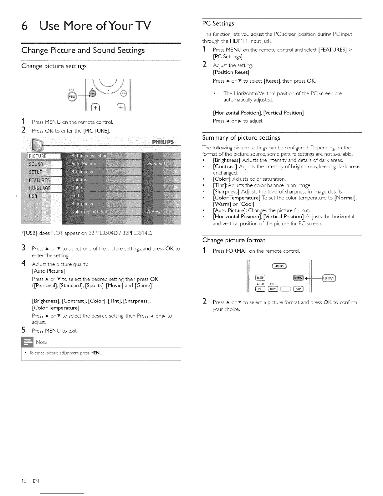 *[USB] does NOT appear on 32PFL3504D / 32PFL3514D.