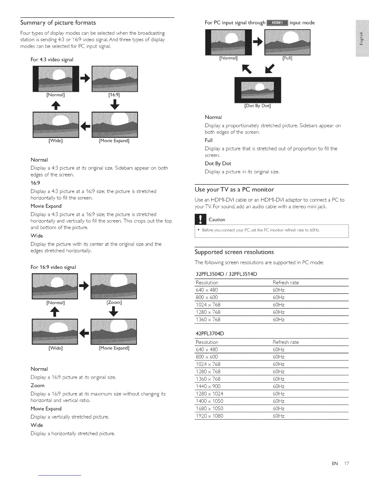 station is sending 4:3 or 16:9 video signal,And three types of displa7