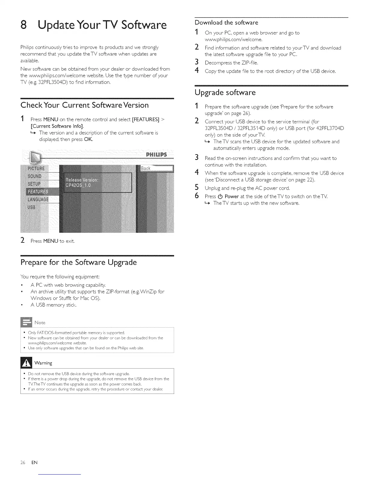 32PFL3504D / 32PFL3514D only) or USB port (for 42_PFL3704D