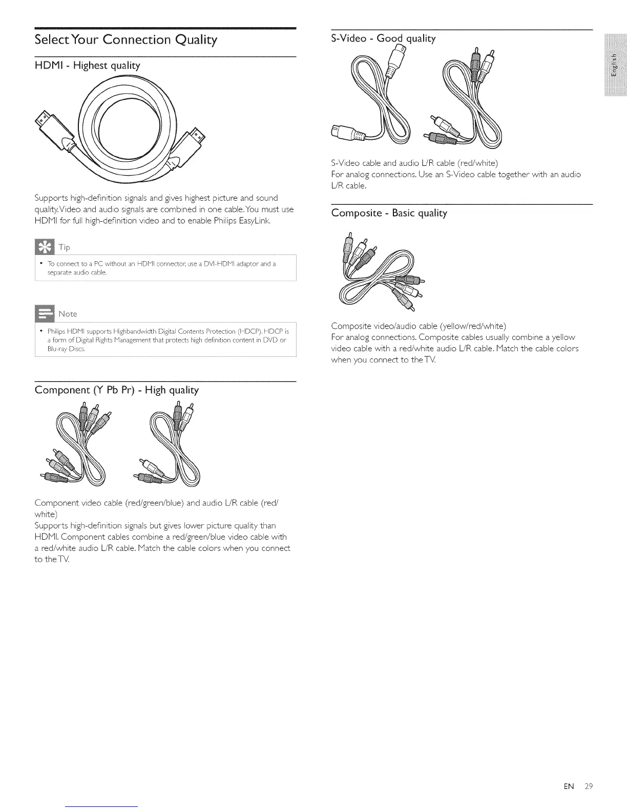 • Philips HDMI supports Highbandwidth Digital Contents Protection (HDCP), HDCP is