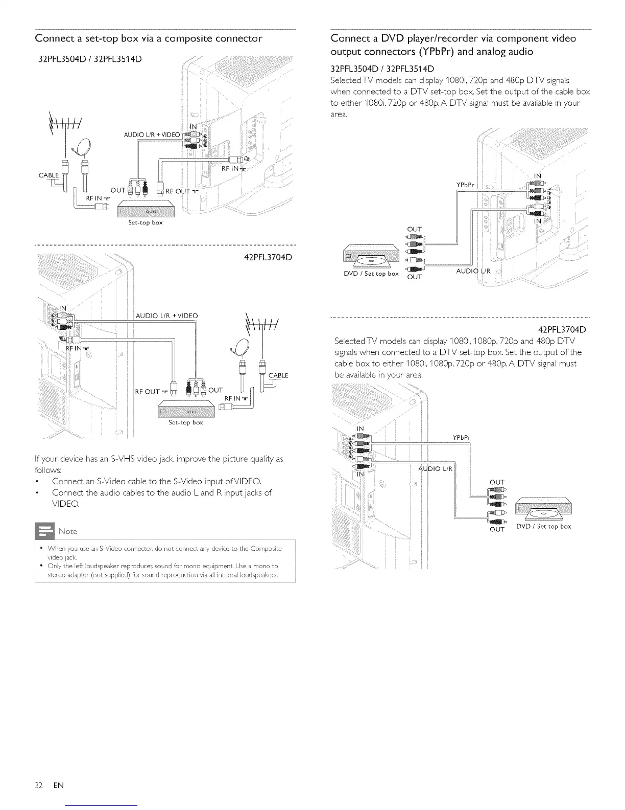 when connected to a DTV set-top box. Set the output of the cable box
