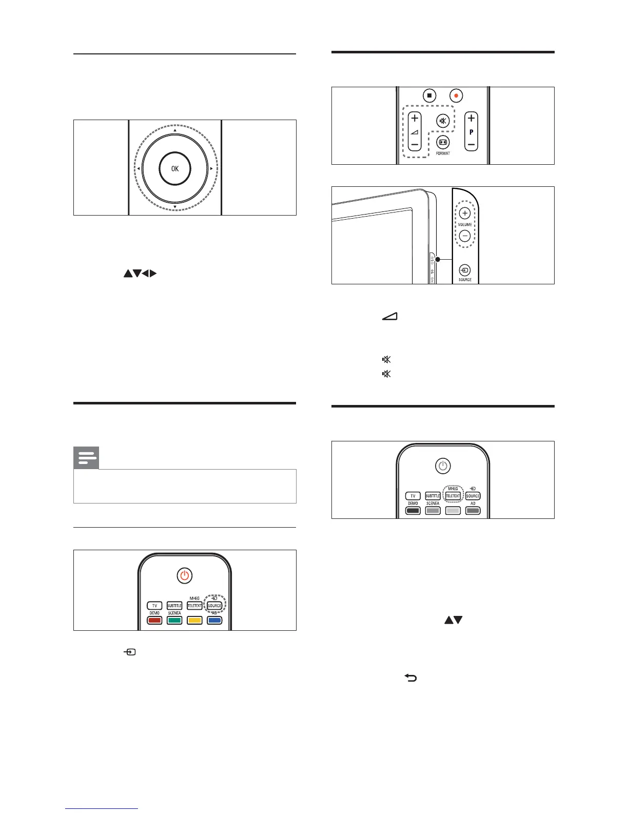 Press • VOLUME +/- on the side of the TV.