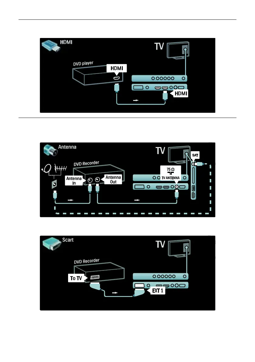 Finally, use a SCART cable to connect the DVD Recorder to a SCART connector on the back of