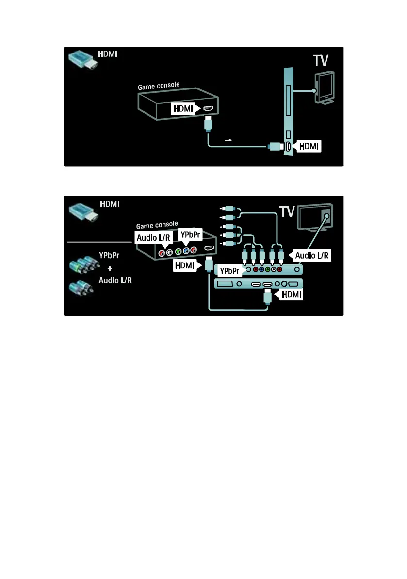 The most practical connections for a game console are at the side of the TV.
