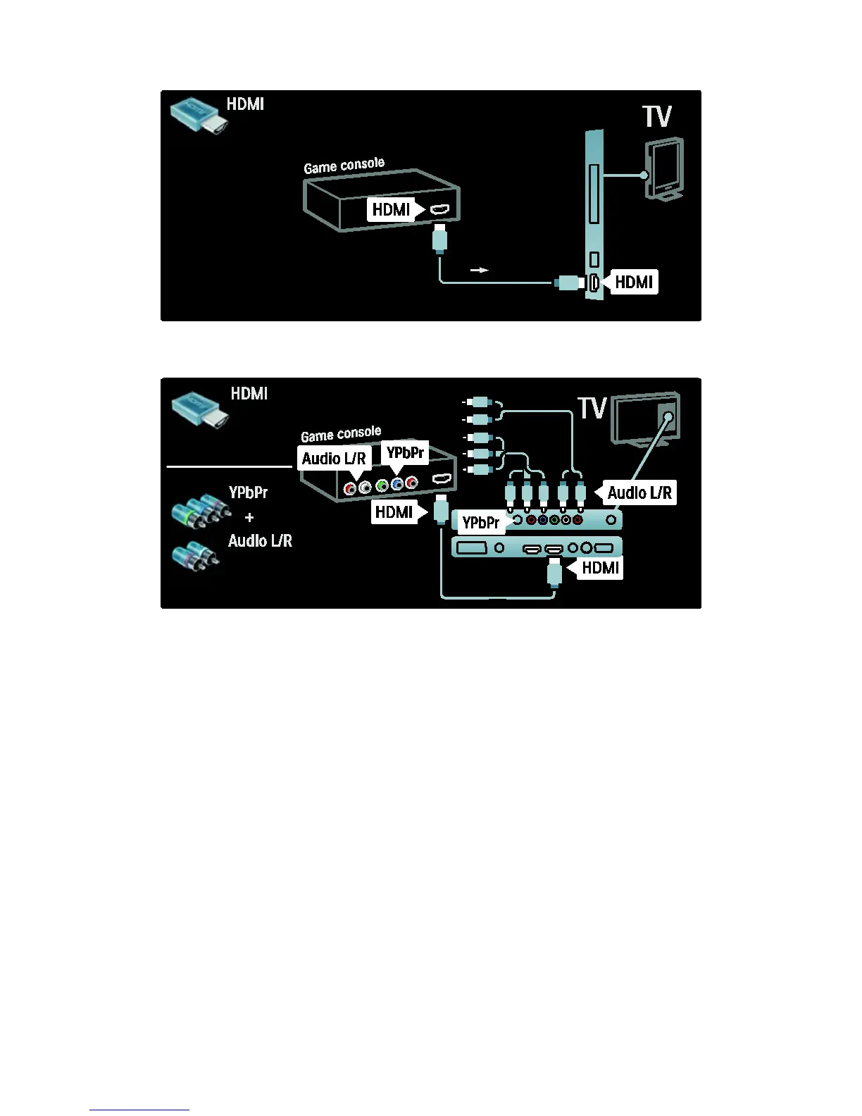 connect the game console to the back of the TV.