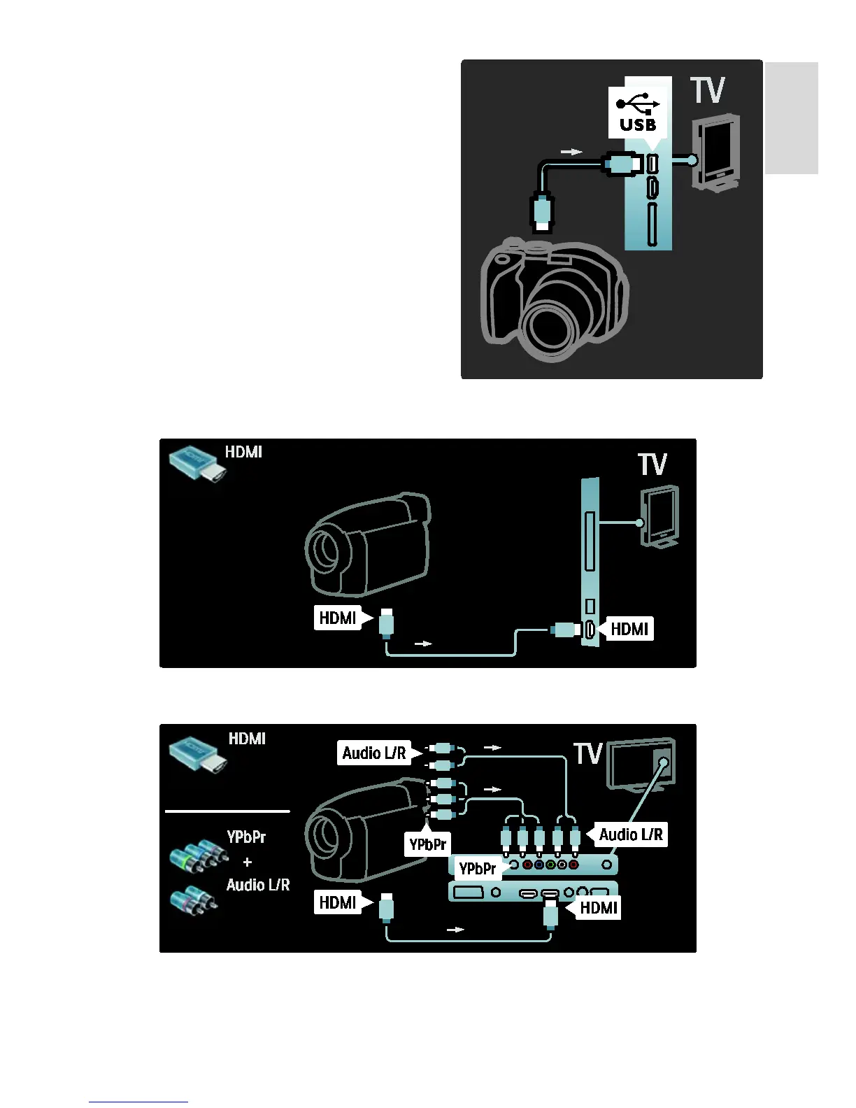 If you cannot use the side connector, use an HDMI or the EXT2 (YPbPr and Audio L/R) cable to
