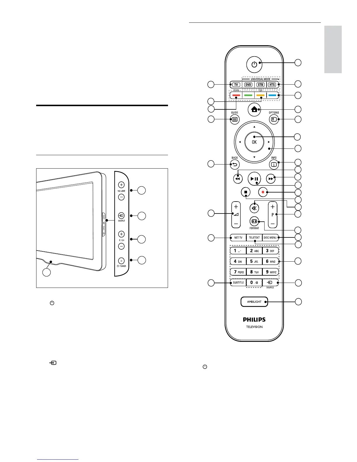 a POWER: Switches the product on