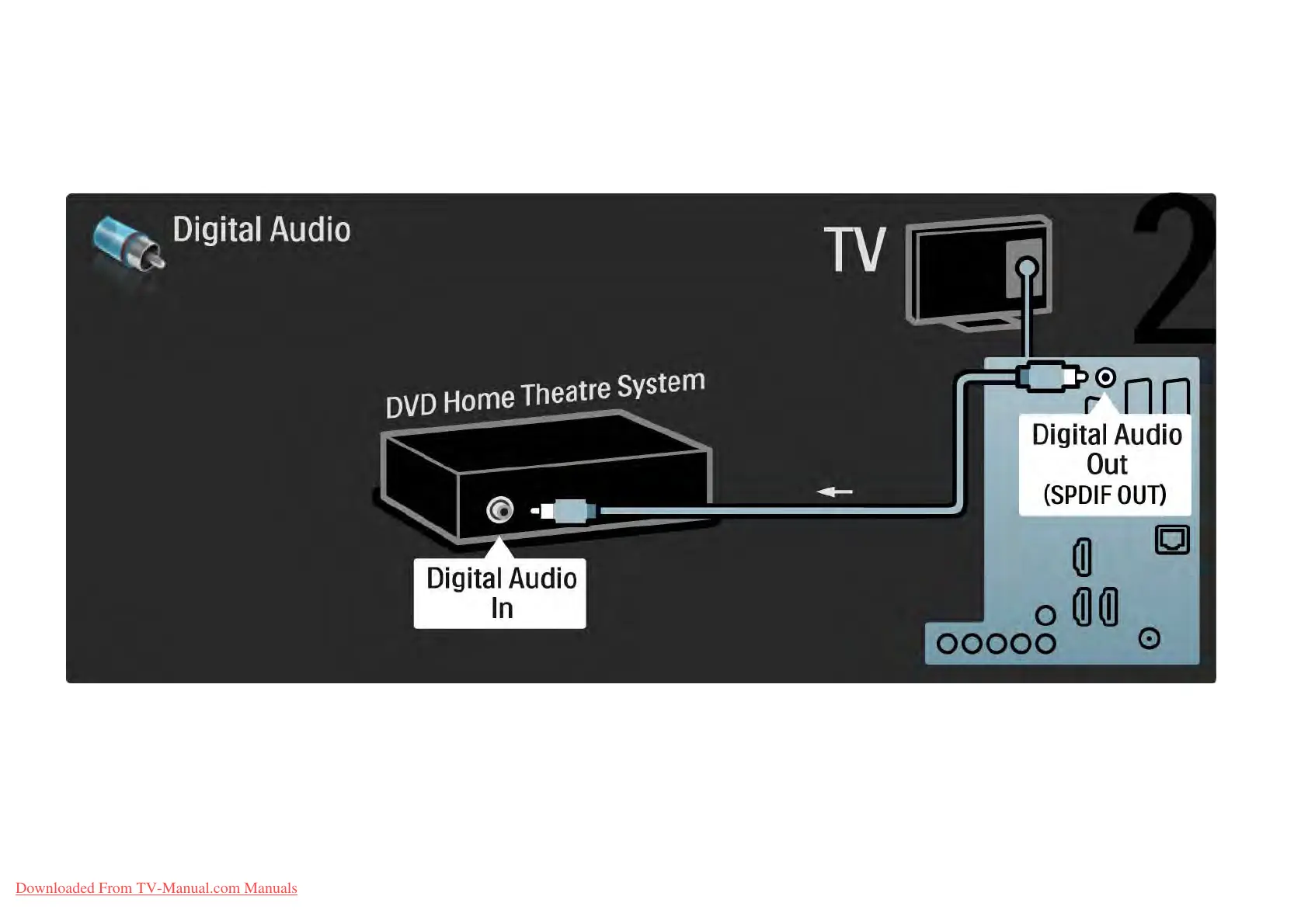 Finally, use a digital audio cinch cable to connect the device to the TV or alternatively, use the analogue Audio Out L/R.