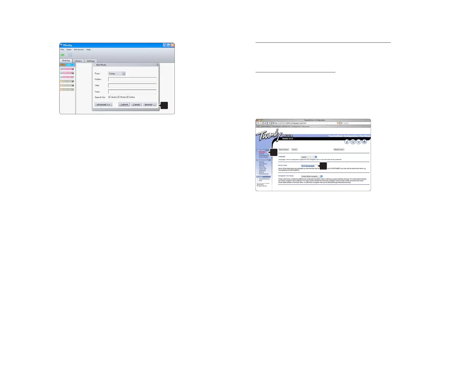 In Twonky Media click Basic Setup > First steps.