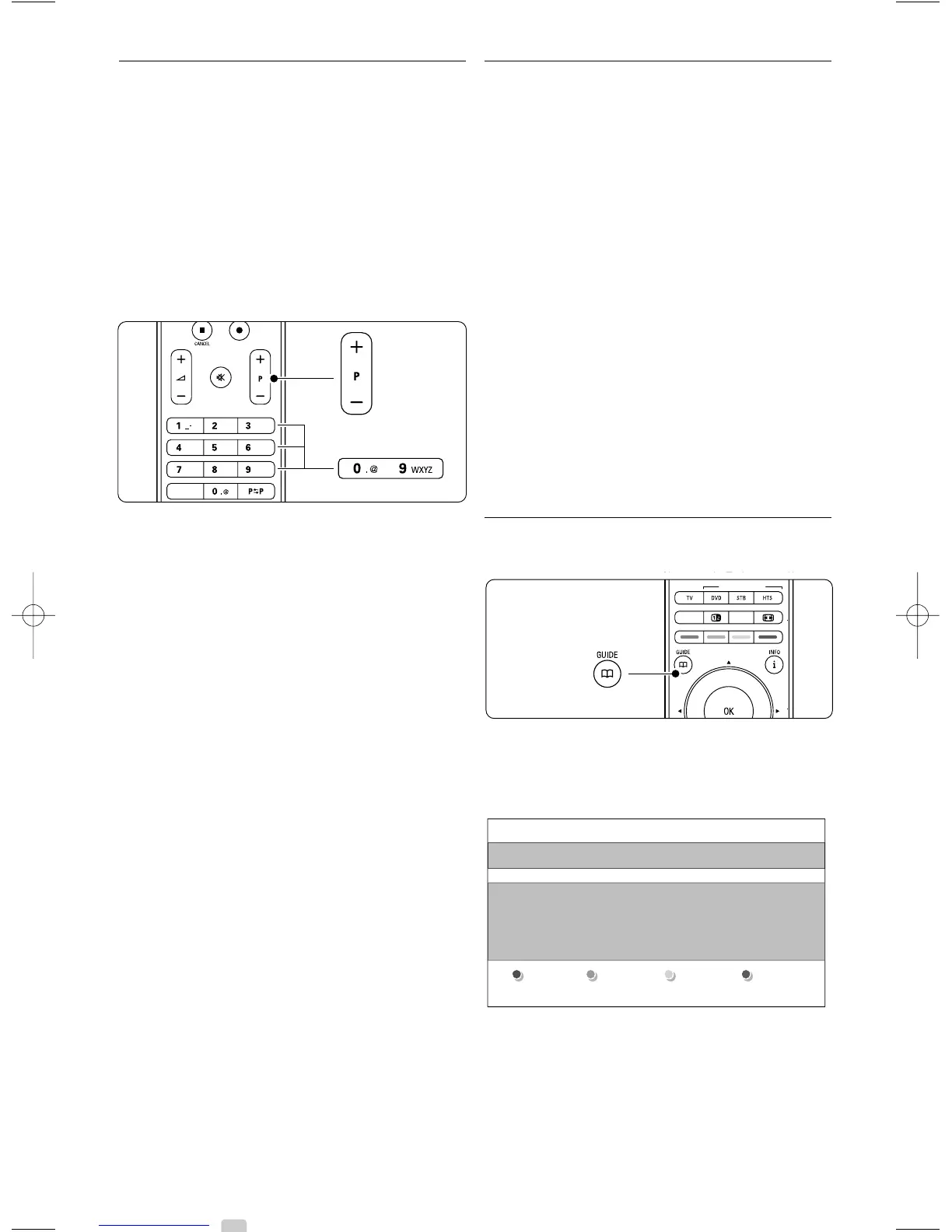 -P+ to go through the TV channels of the