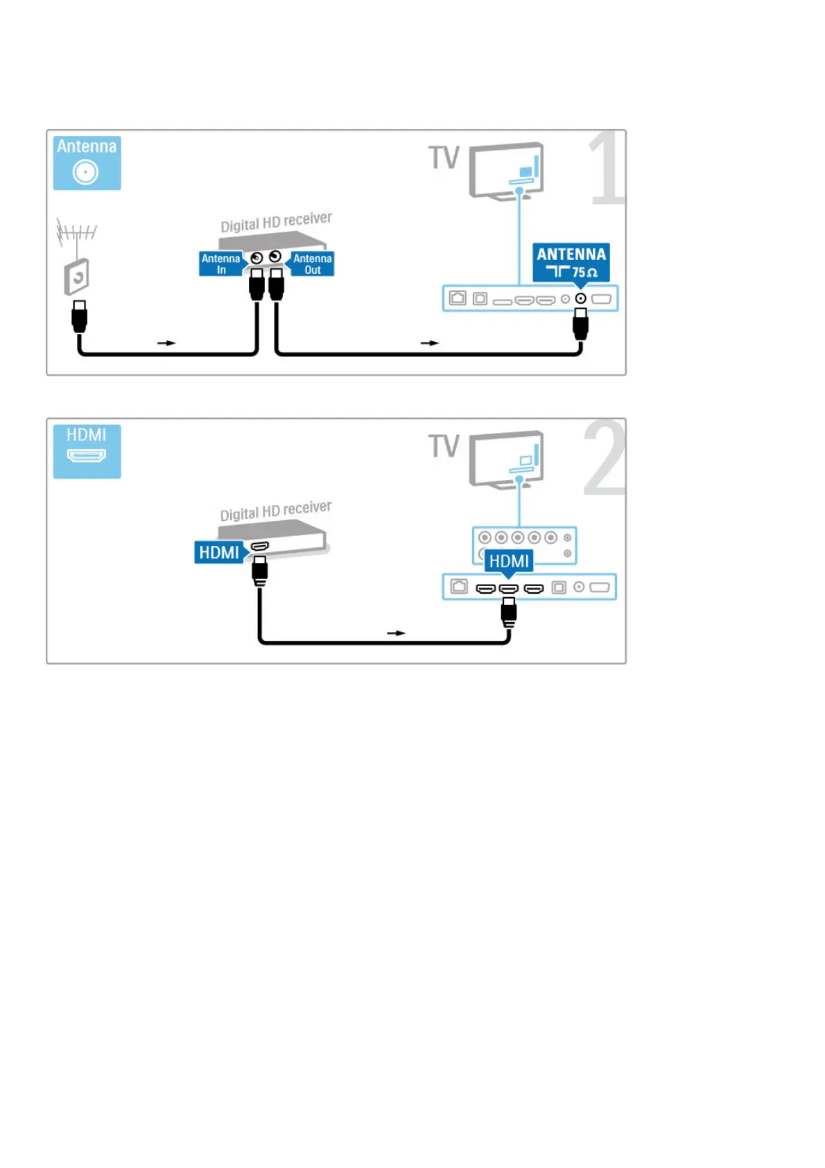 First, use 2 antenna cables to connect the device to the TV.