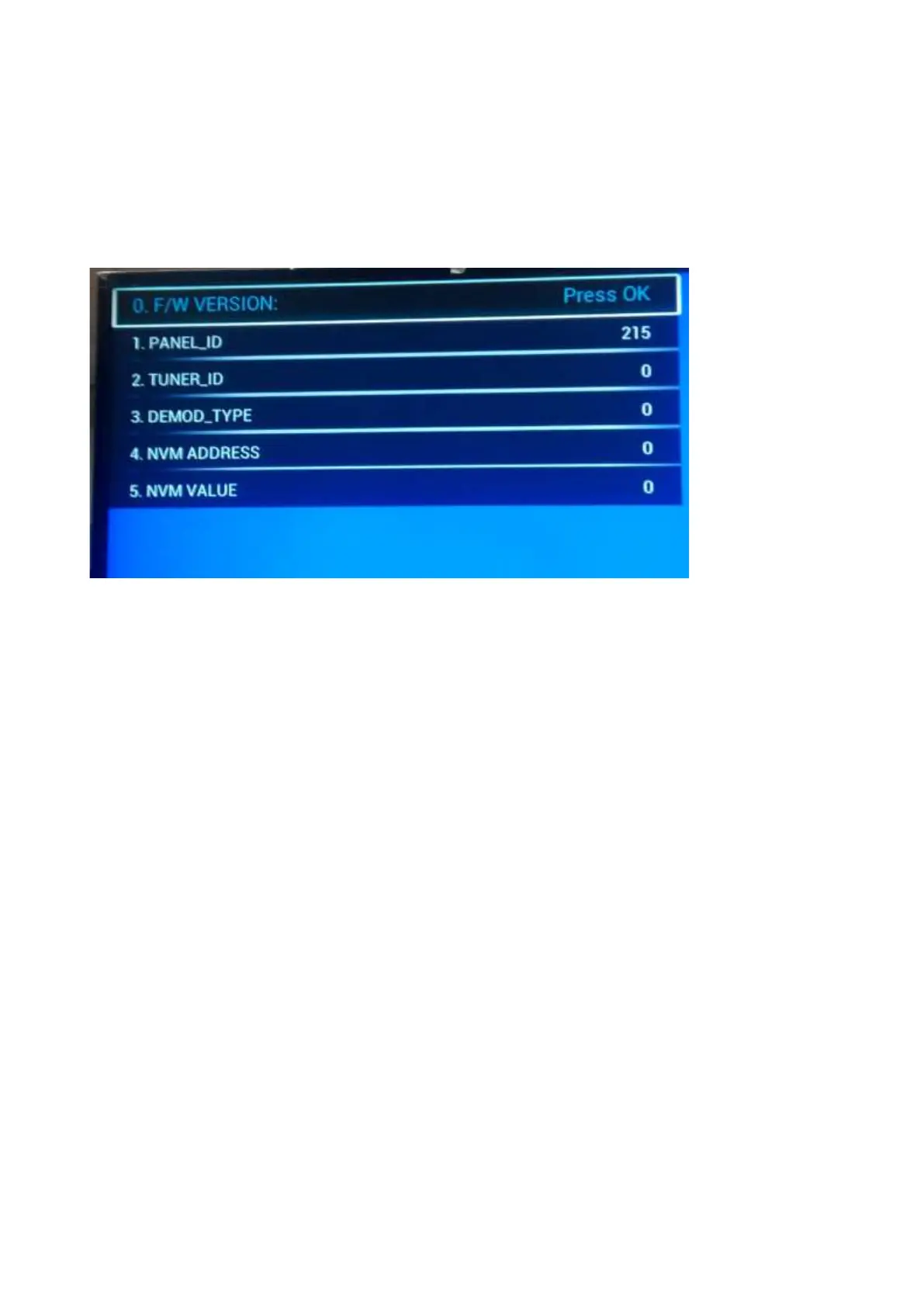 After entering the Factory mode, we can see many items displayed, use the UP/DOWN keys to display the next/previous menu items