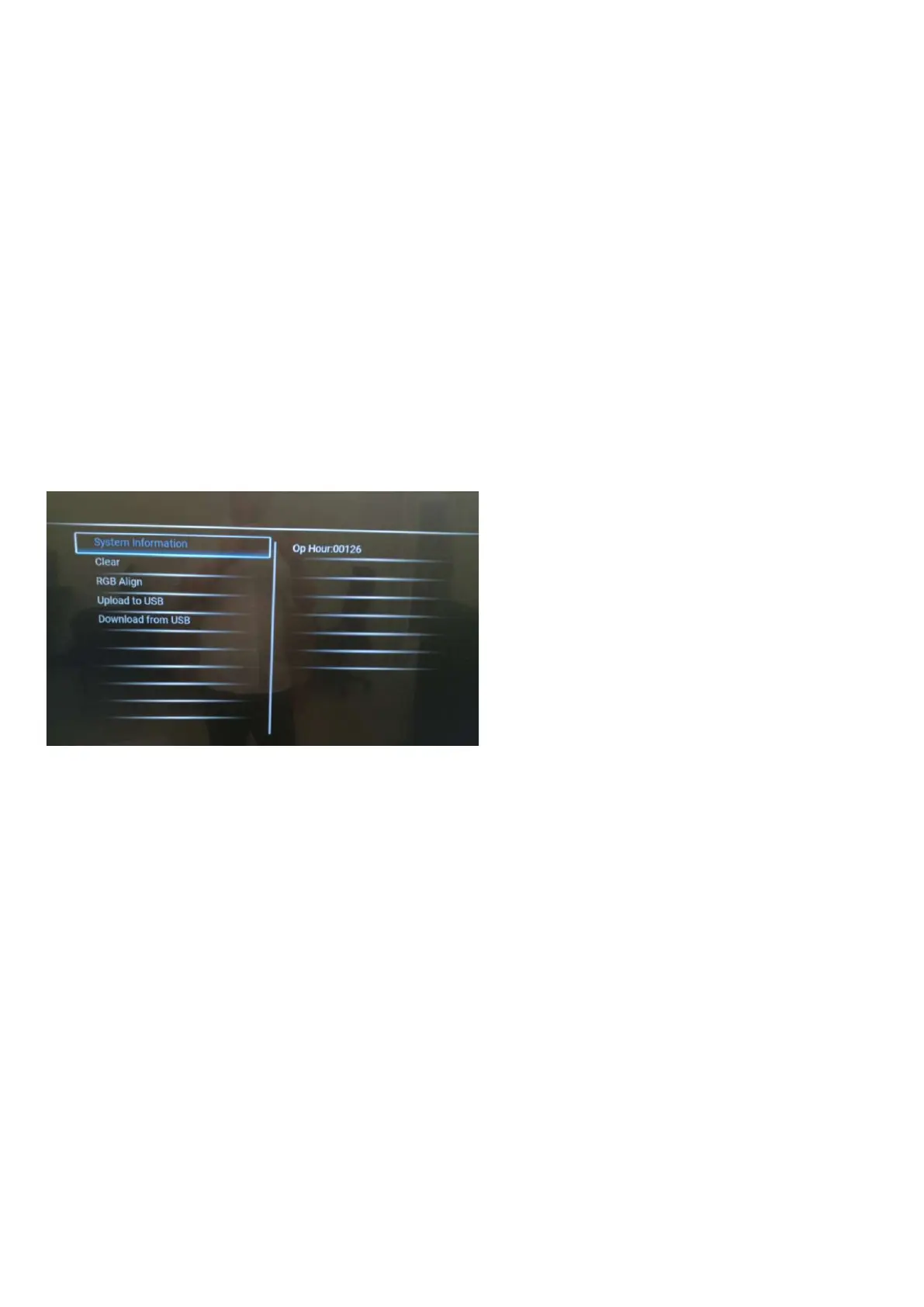 Press the following key sequence on the remote control transmitter: from the “menu/home” press “1999”, directly followed by the “Back/Return” button.