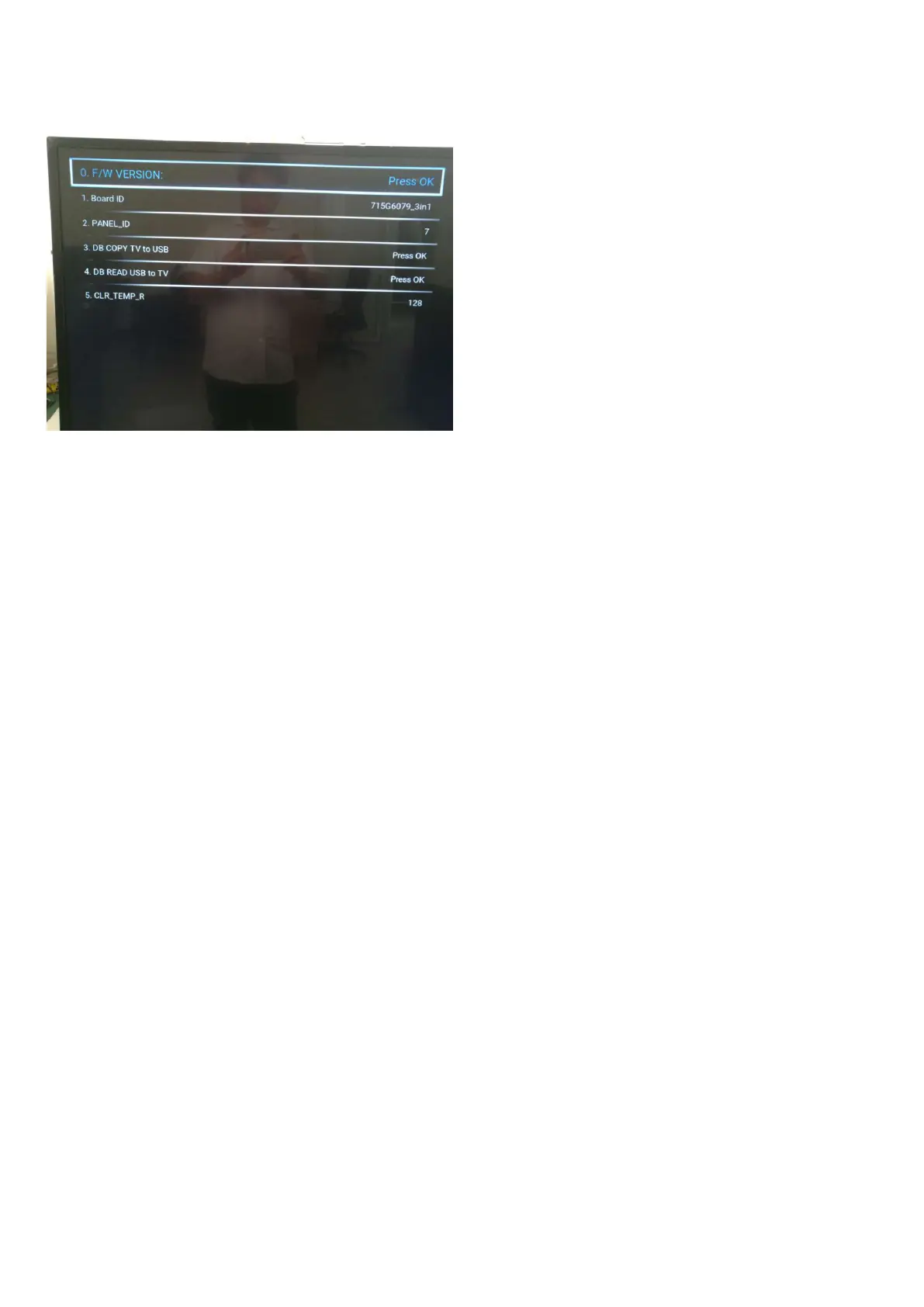 Note: When the TV is switched “off” by a power interrupt, or normal switch to “stand-by” while in the factory mode, the TV will show up in “normal operation