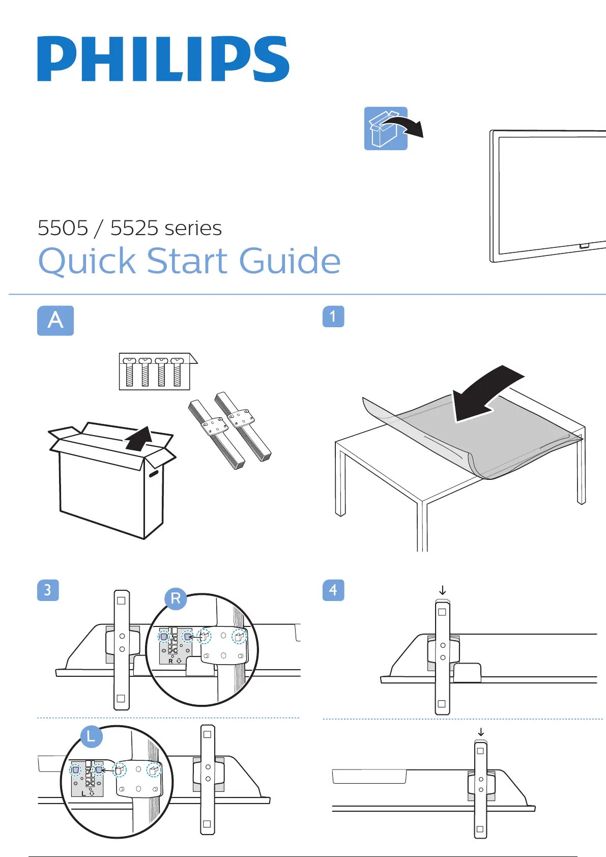 Philips 32PHS5525/12 - Quick Start Guide Assembly; Unpacking and Preparation; Attaching Stands