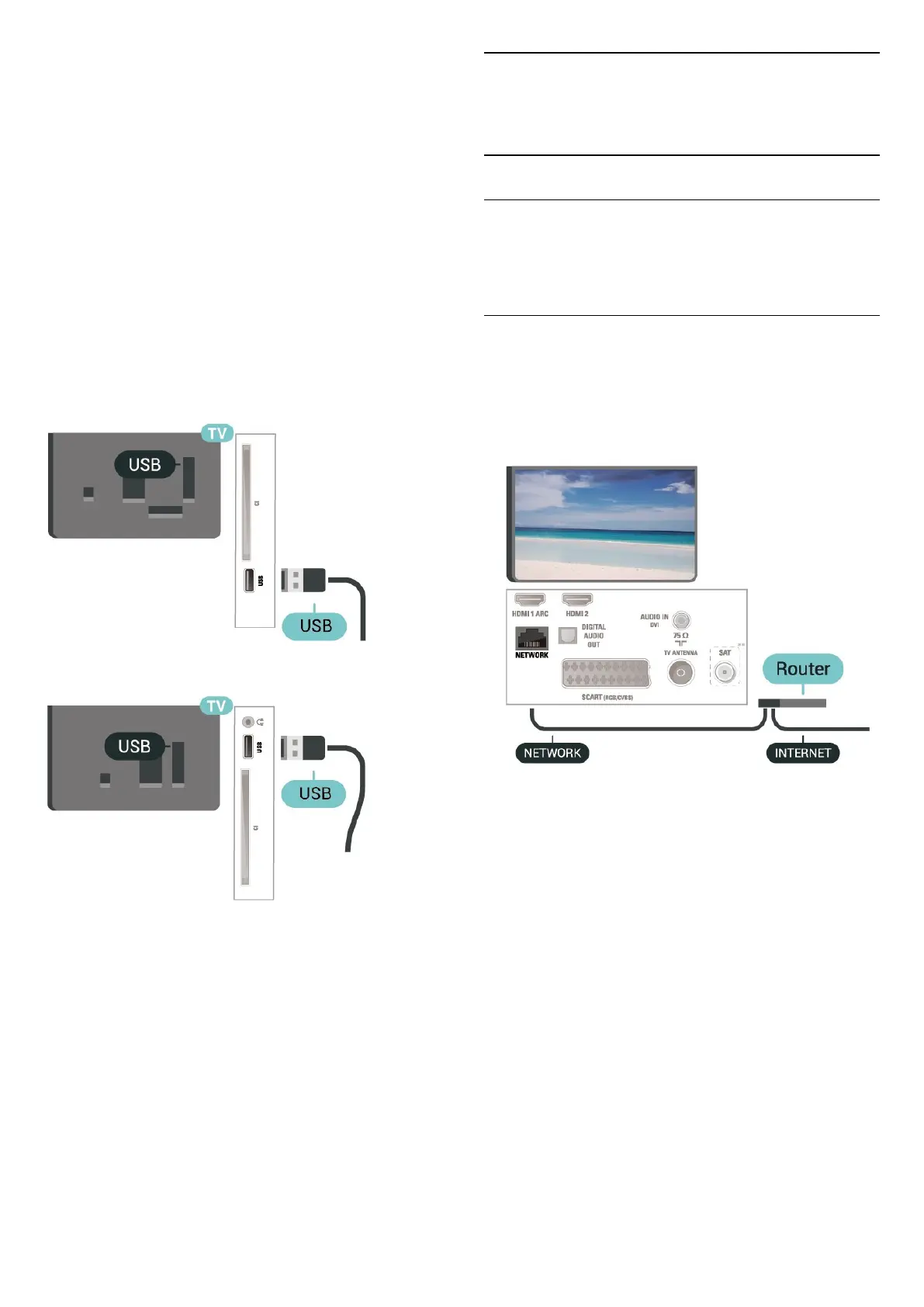 the USB connections on the TV. Do not connect