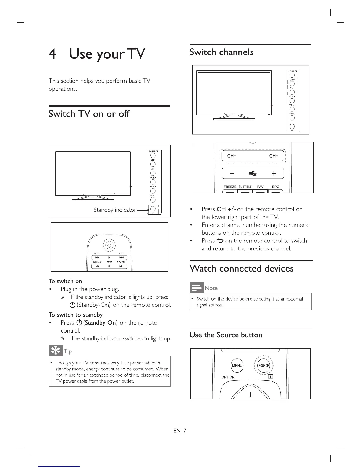 Philips 32PHT5200 - How to Use Your TV; Powering the TV On and Off; Changing TV Channels; Connecting and Watching External Devices