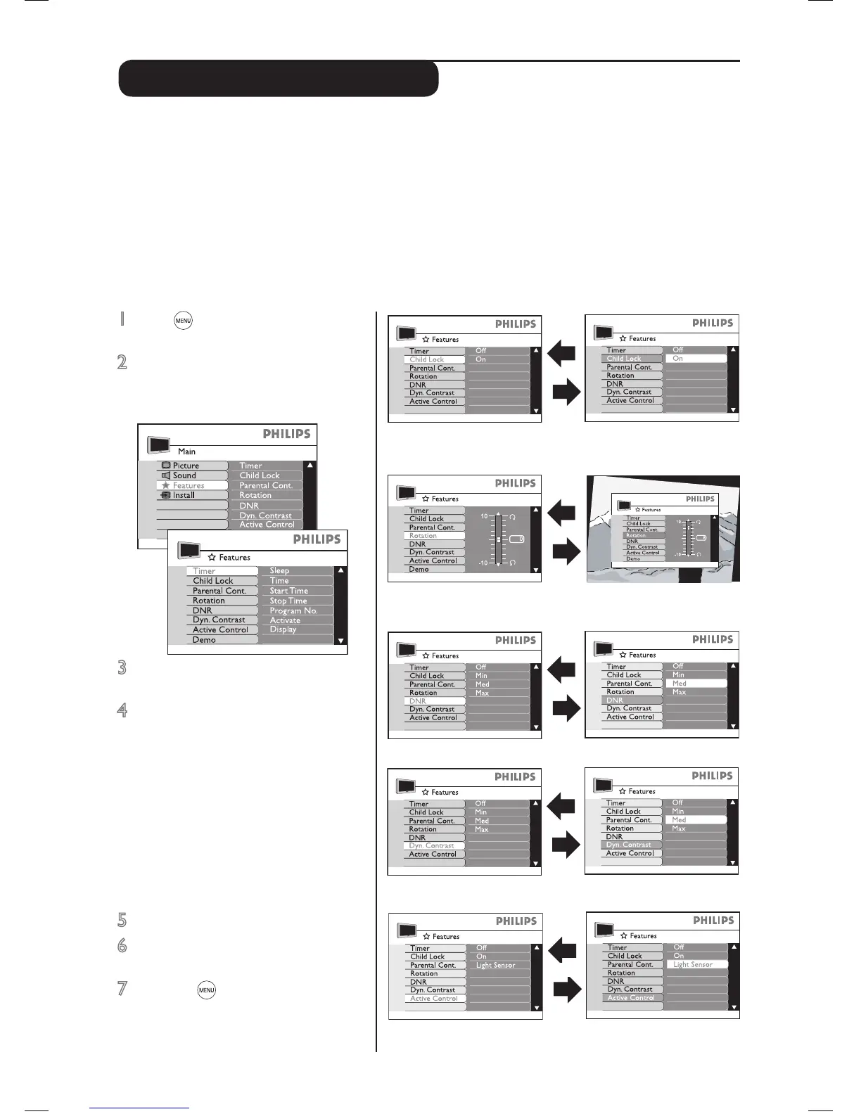 cally adjust picture quality settings. The “Light Sensor” setting uses a sensor to adjust the picture bright-