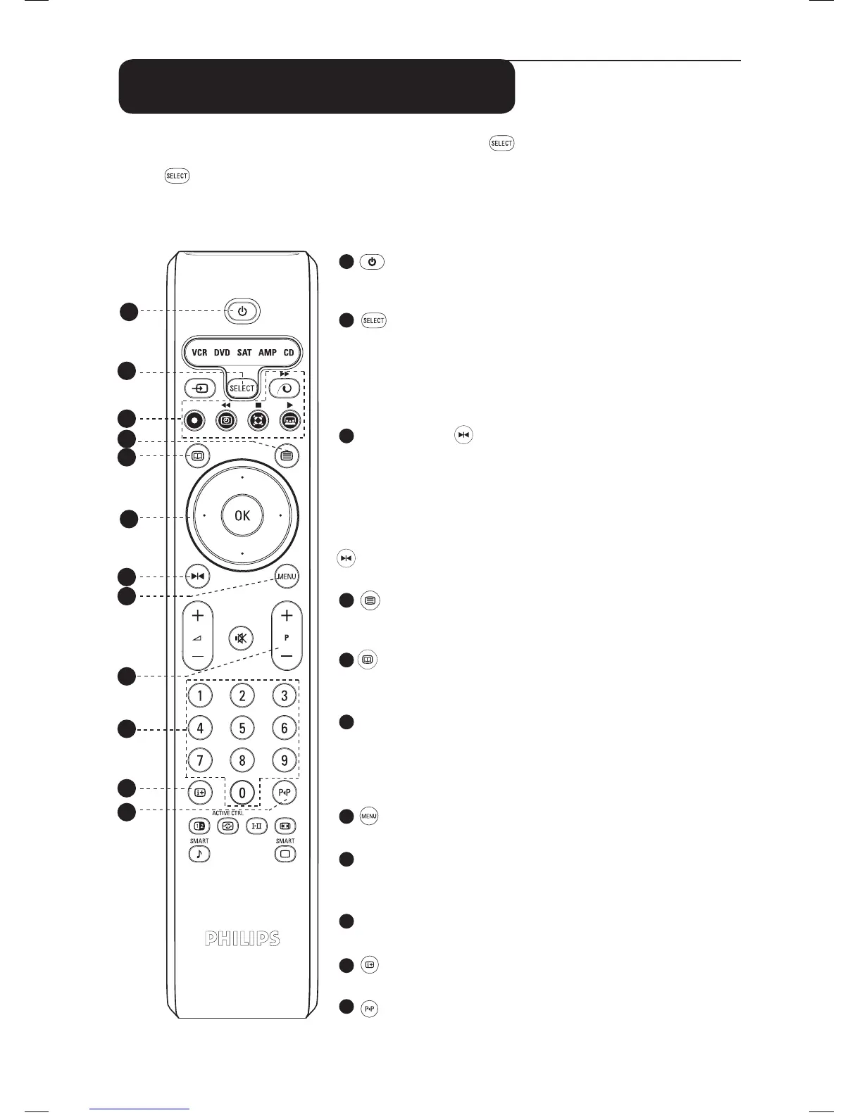 Cette télécommande actionne le matériel Philips suivant : magnétoscope, lecteur DVD, satellite (RC6),