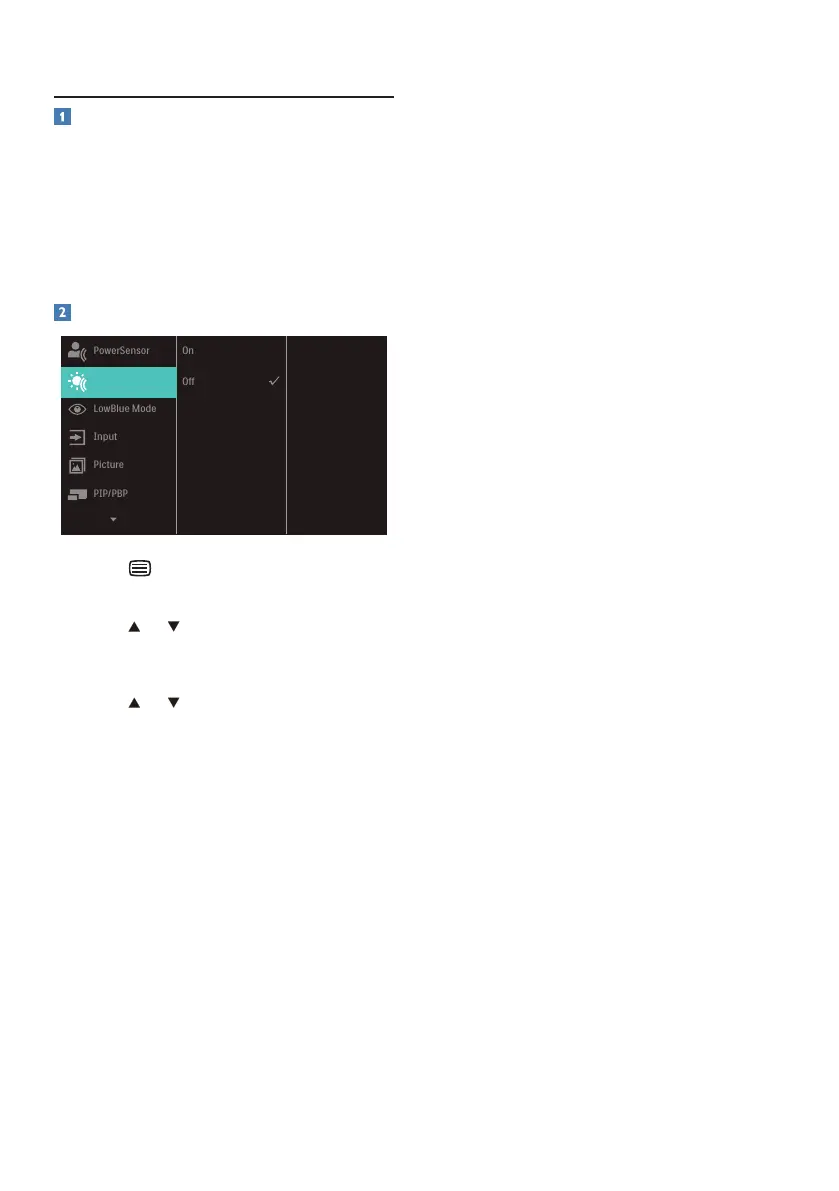3. Press or button to turn on or o