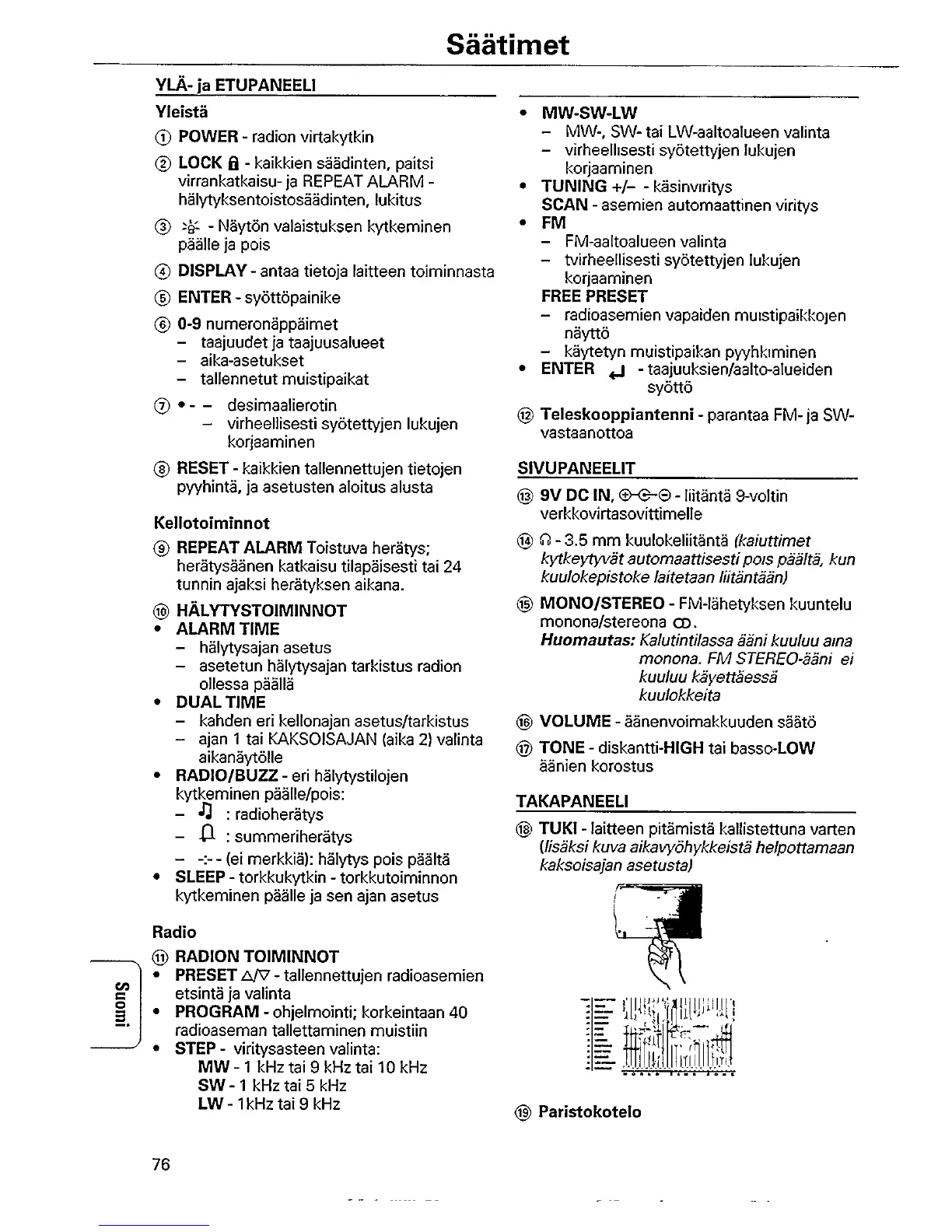 Philips 3750 - Controls; General Controls; Clock Functions; Radio Functions