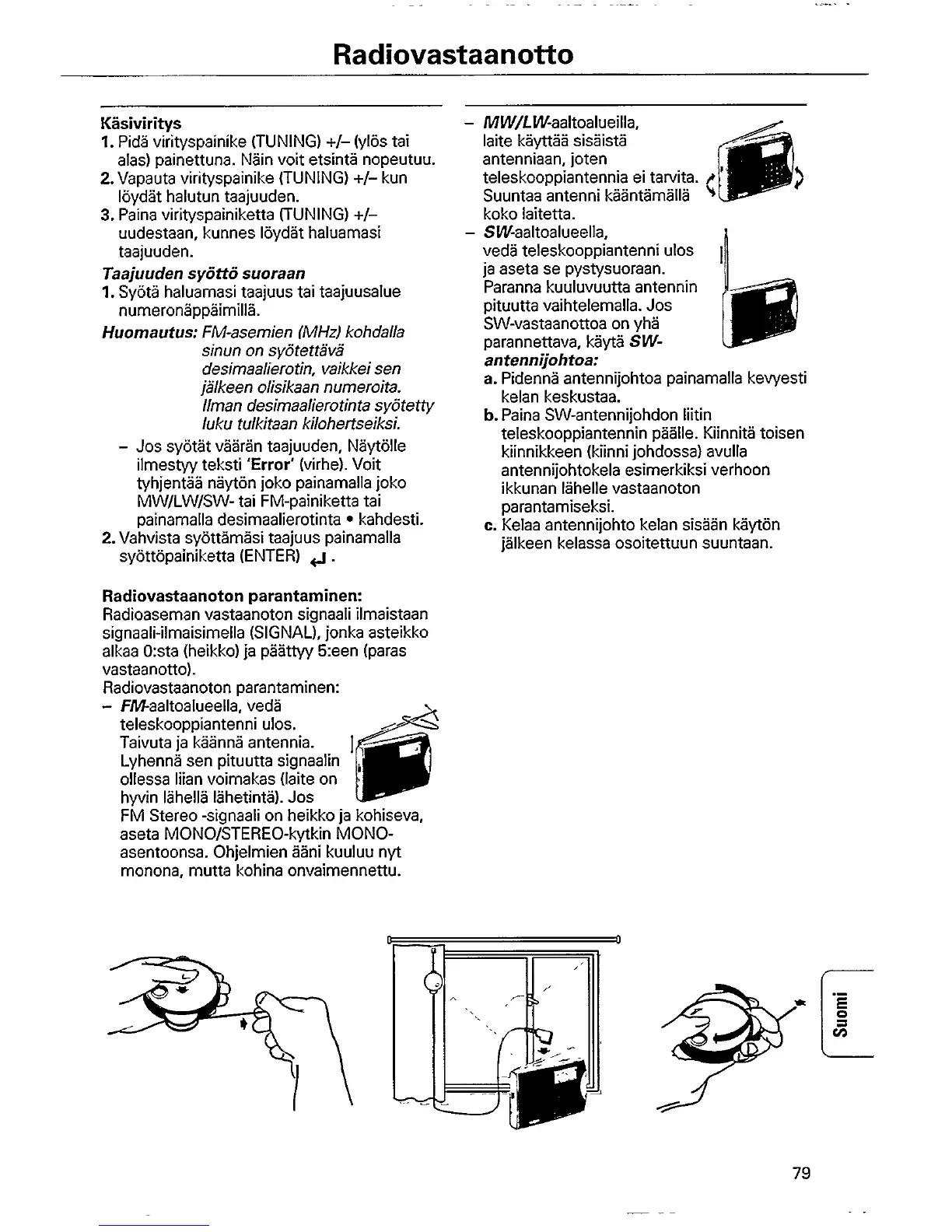 Philips 3750 - Manual Tuning and Direct Frequency Input; Improving Radio Reception