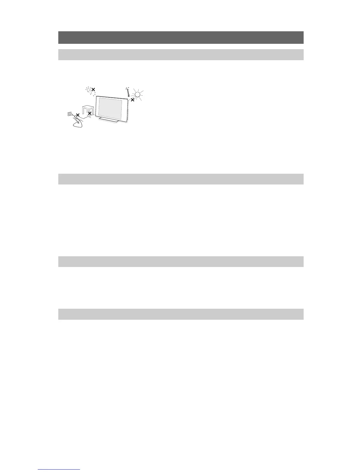 • Avoid heat, direct sunlight and exposure to rain or water.