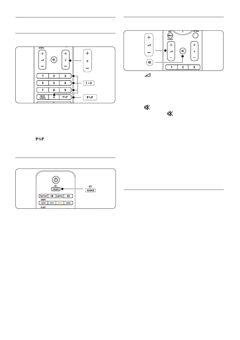 Switch between DVB-C or DVB-T channels 4.